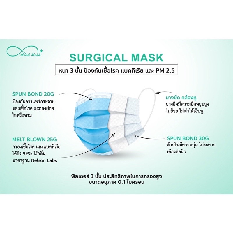 [กล่องเดี่ยว 50 ชิ้น] Mind mask หน้ากากอนามัยทางการแพทย์ รุ่น 3 ชั้น