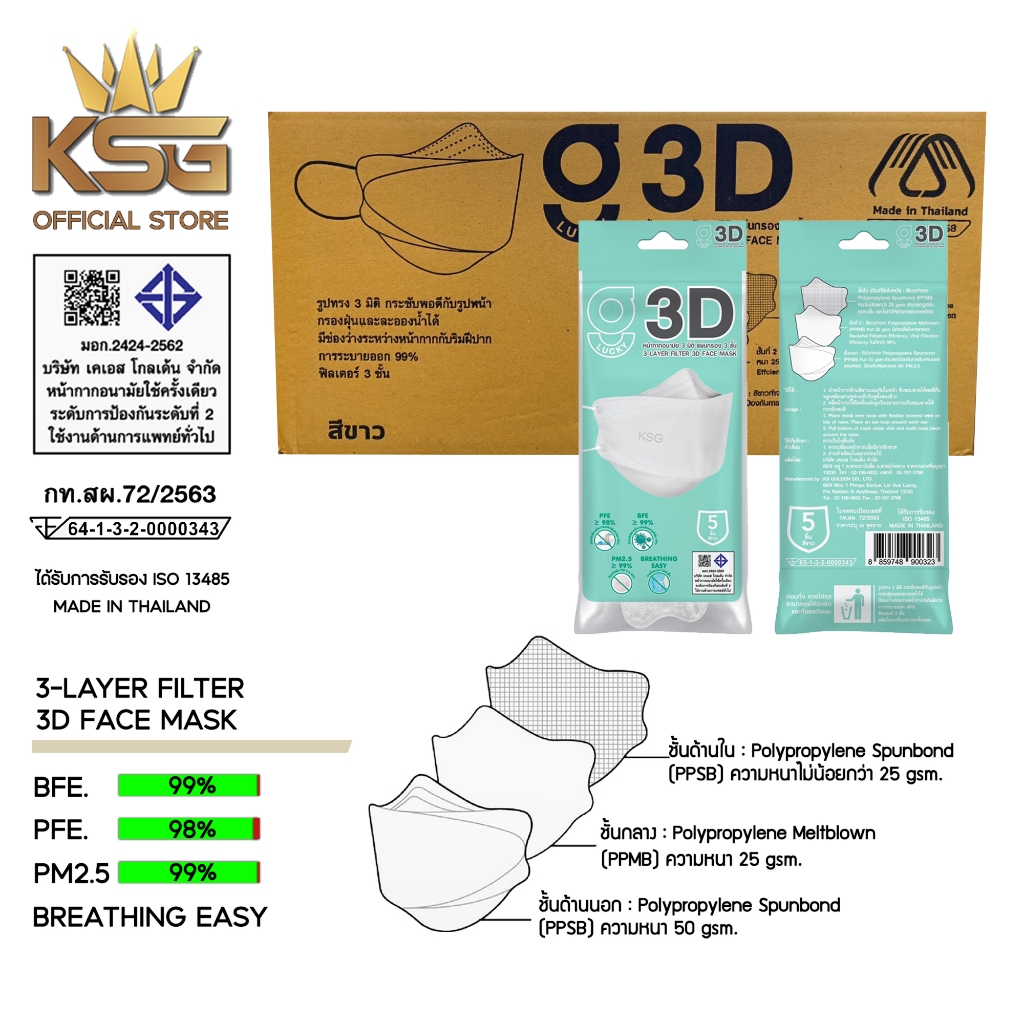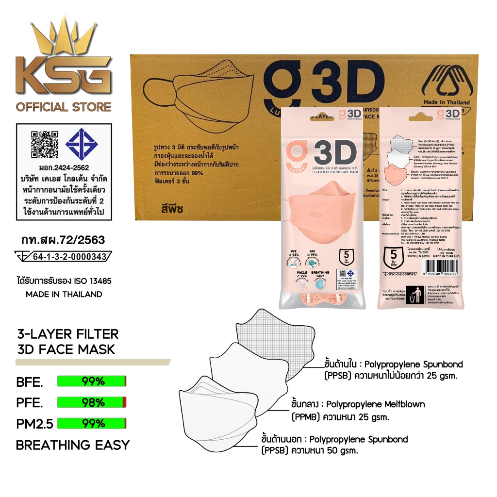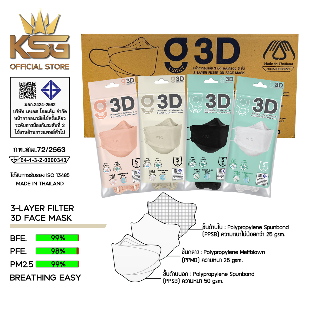 [KSG Official] หน้ากากอนามัย ทรง 3 มิติ หนา 3 ชั้น G LUCKY 3D Face Mask 3-Layer (ยกลัง บรรจุ 120 ซอง)