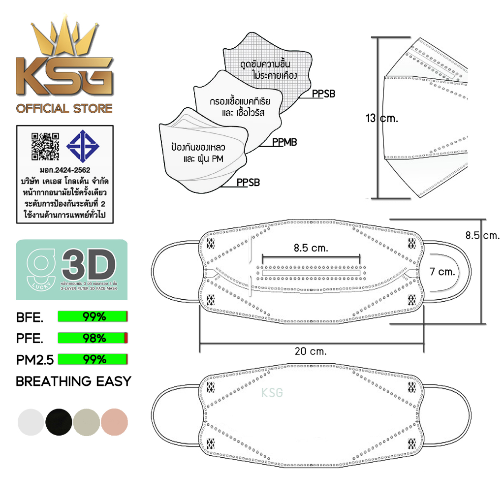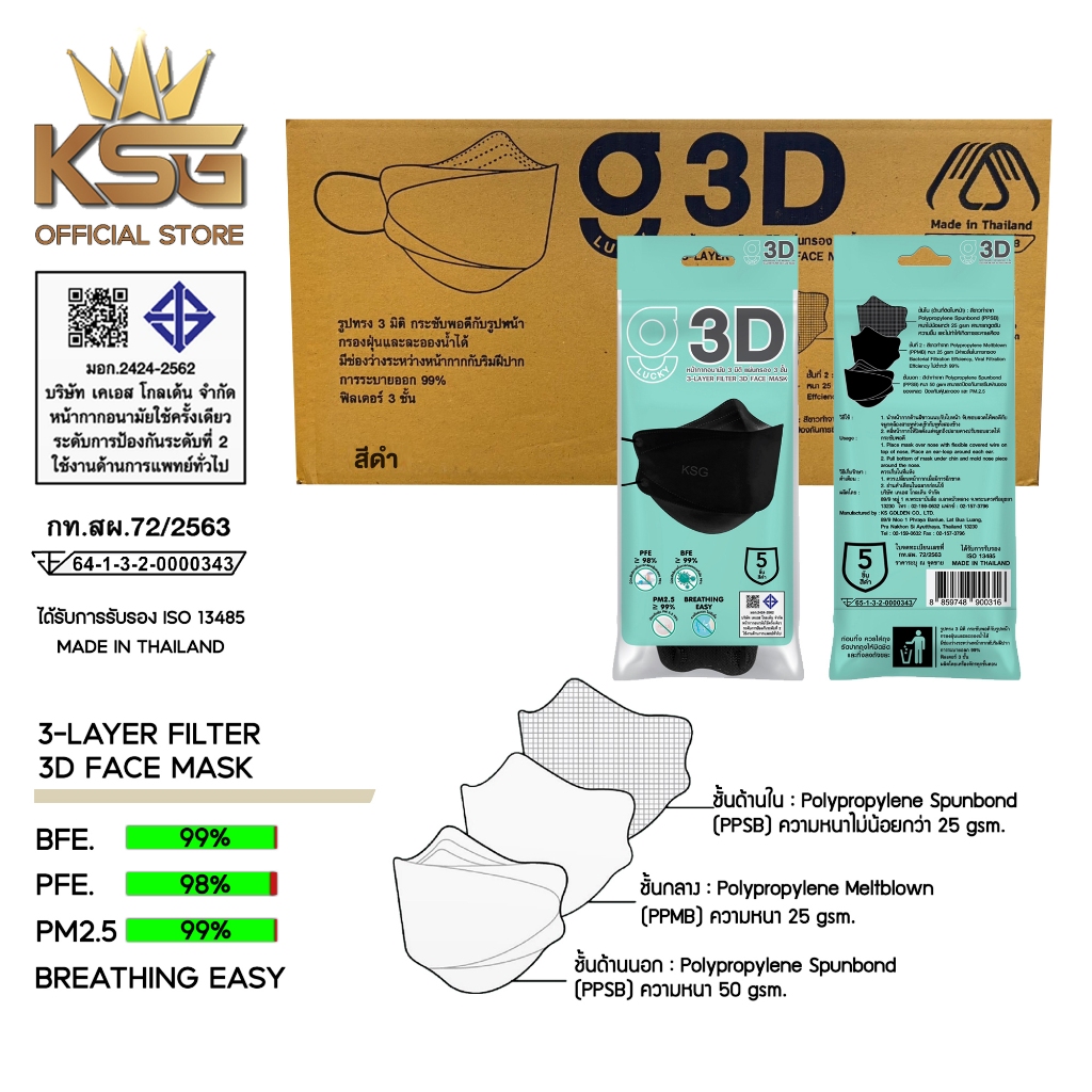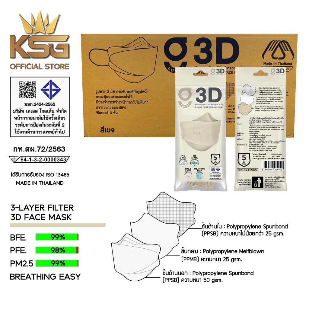 [KSG Official] หน้ากากอนามัย ทรง 3 มิติ หนา 3 ชั้น G LUCKY 3D Face Mask 3-Layer (ยกลัง บรรจุ 120 ซอง)