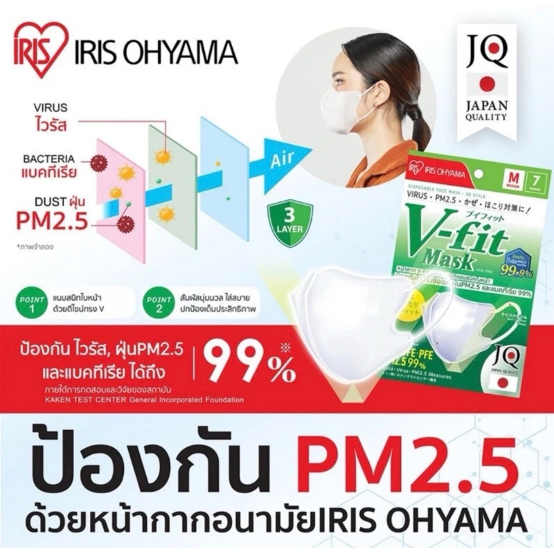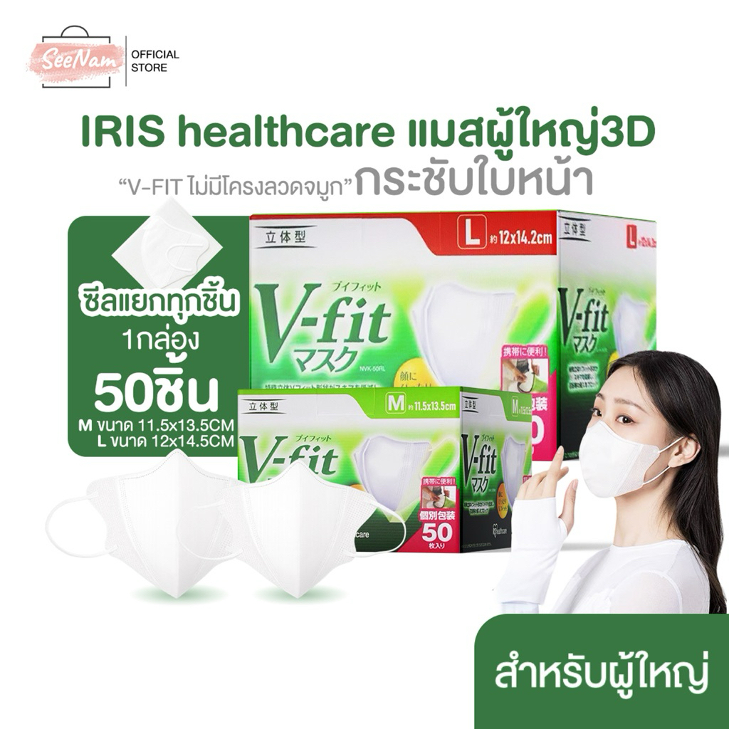 ⚡️Vfit แบบซอง 7 ชิ้น หน้ากากอนามัย ☀️ไอริส โอยามะ Iris Ohyama V- Fit Mask ใส่สบาย