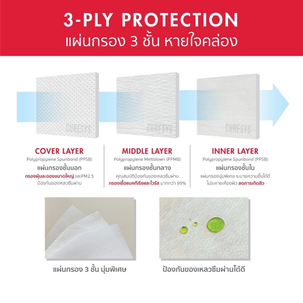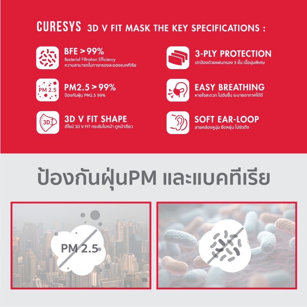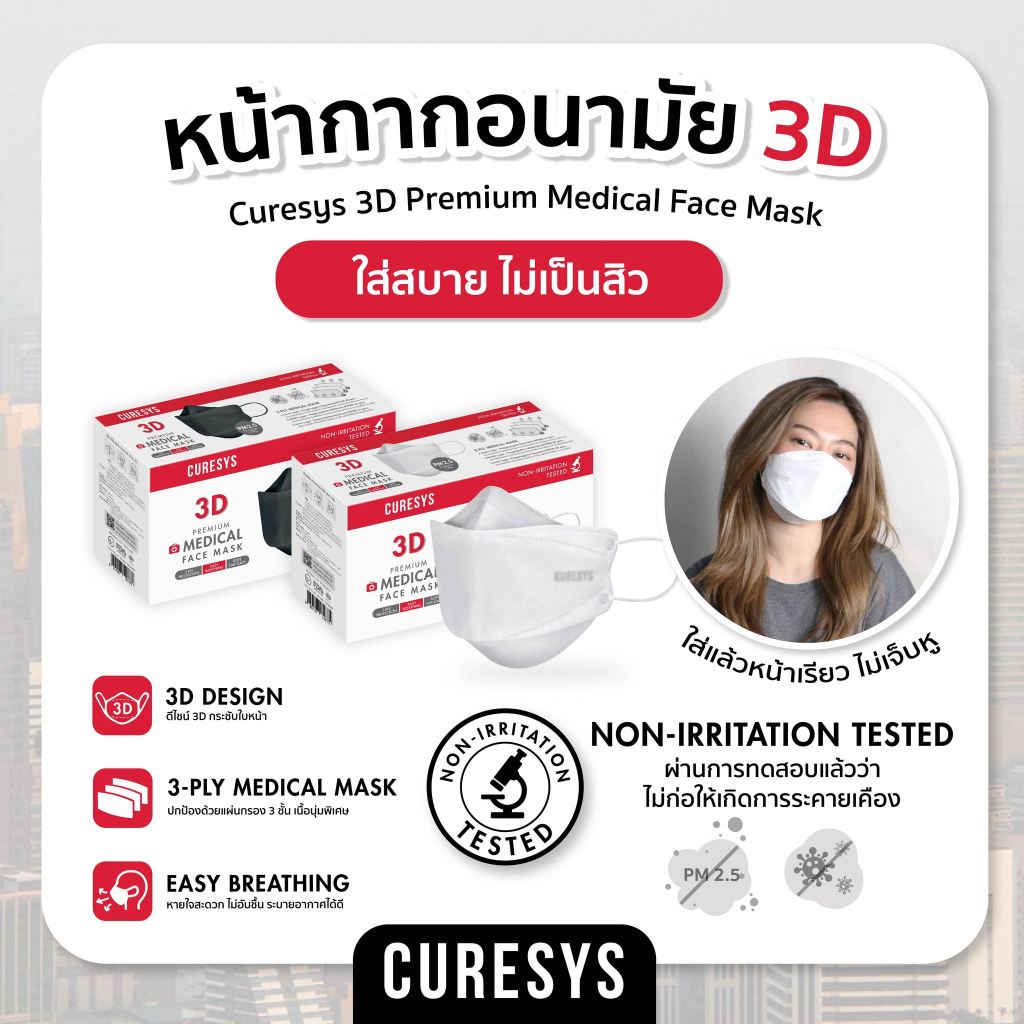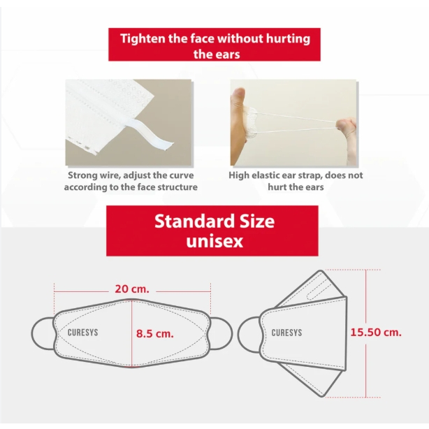 [กล่องใหญ่] Curesys 3D Premium Medical Face Mask [50 ชิ้น][มีให้เลือก 2 สี] หน้ากากอนามัยทรง 3D กรอง 3 ชั้น PM2.5
