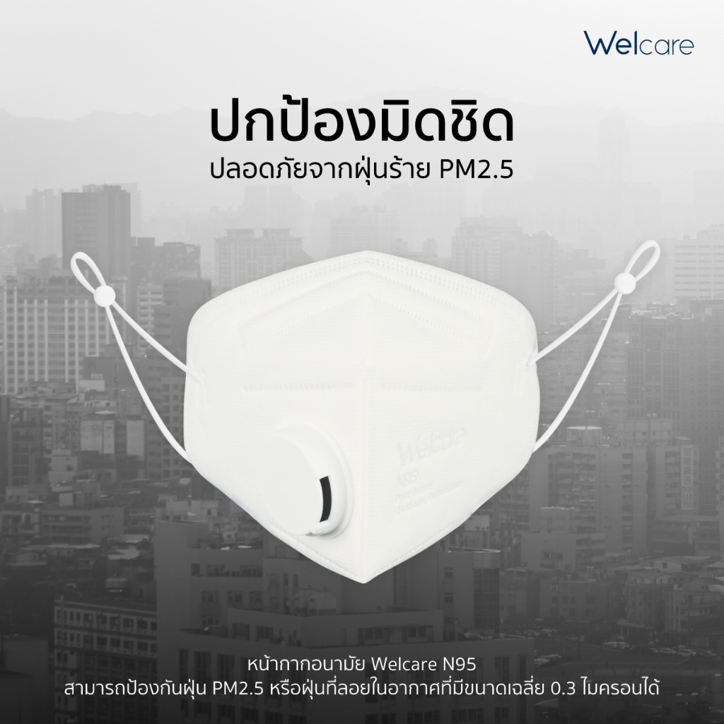 [Official] Welcare N95 Medical Mask หน้ากากอนามัยเวลแคร์ รุ่น N95 แบบมีวาล์ว และไม่มีวาล์ว 1 ชิ้น/ซอง (ป้องกัน PM 2.5)