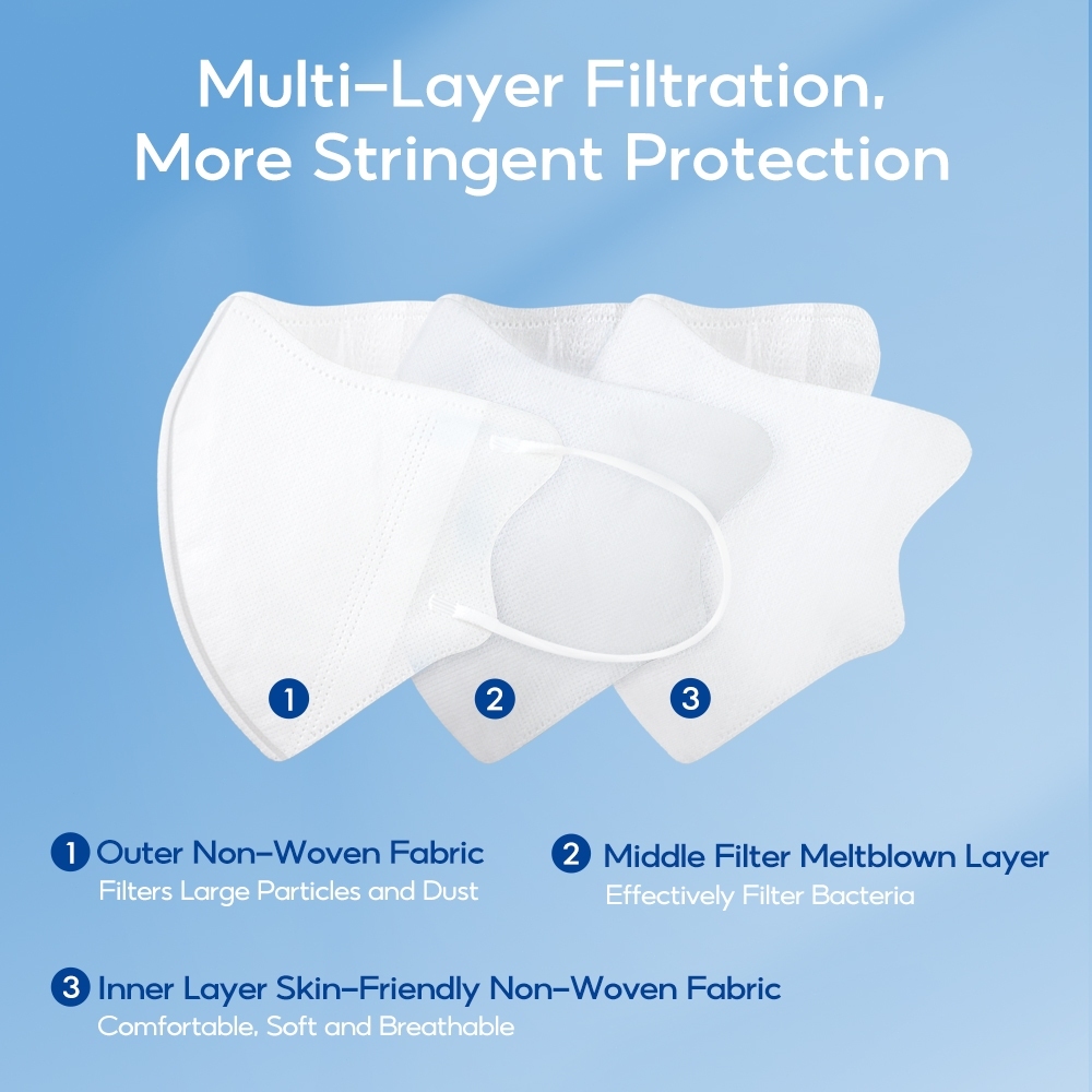 *100 ชิ้น* หน้ากากอนามัย 3 มิติ ผู้ใหญ่ สีขาว Link Care 3d Mask หน้ากากอนามัยป้องกันไวรัสและฝุ่นPM 2.5