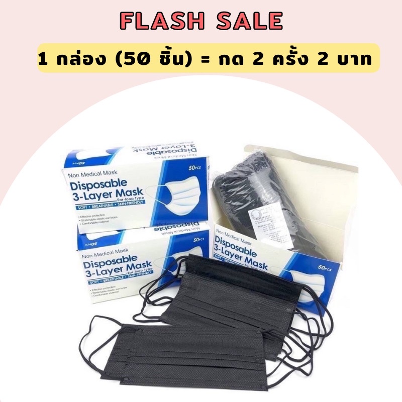Flash sale 🔥🔥 แมสดำ 50 ชิ้นพร้อมกล่อง‼️2 บาท‼️ต้องกดซื้อ 2 ชิ้น เพื่อรับ 50 ชิ้น♥️♥️