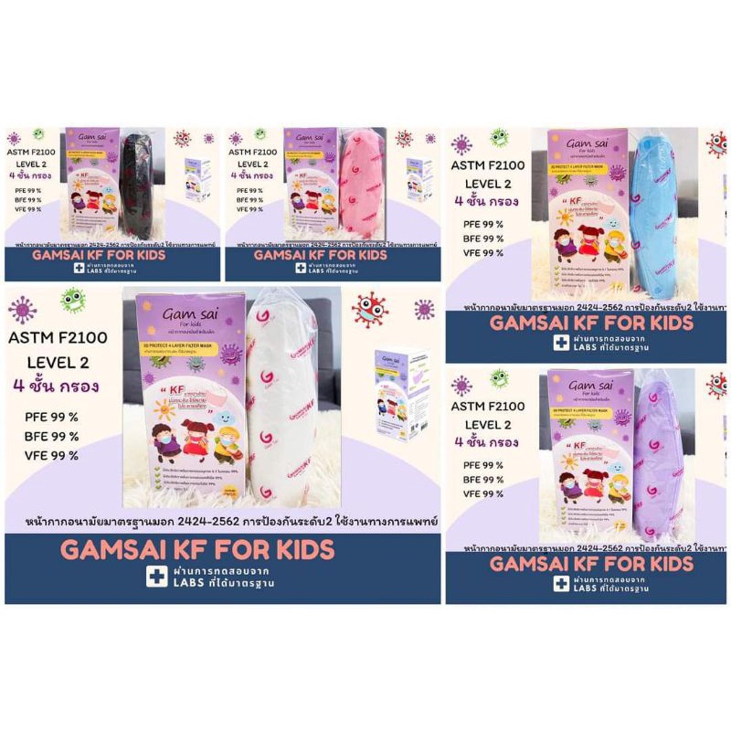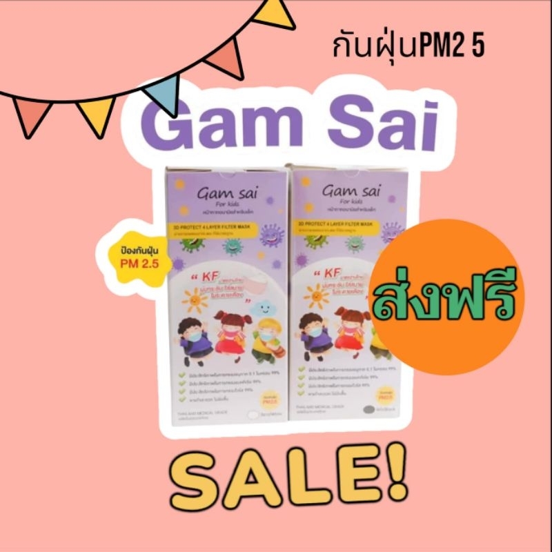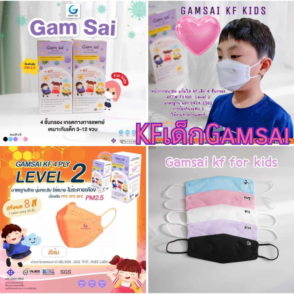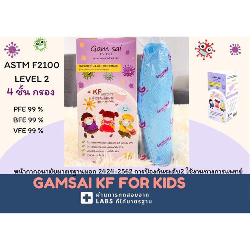Gamsai Kf เด็ก 4 ชั้นกรอง หน้ากากอนามัยเด็กแก้มใสKF ทางการแพทย์25ชิ้น