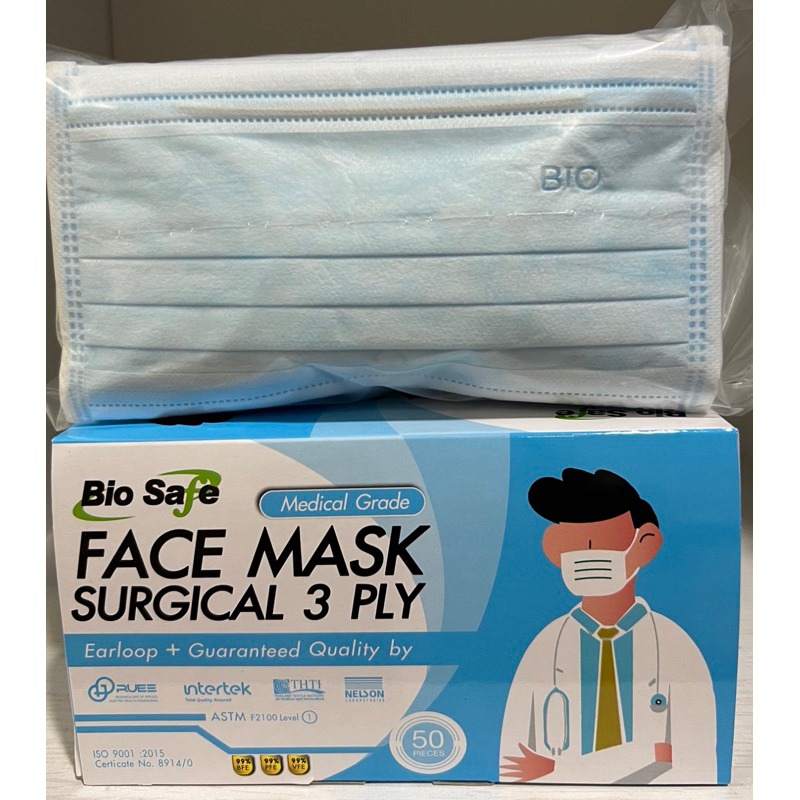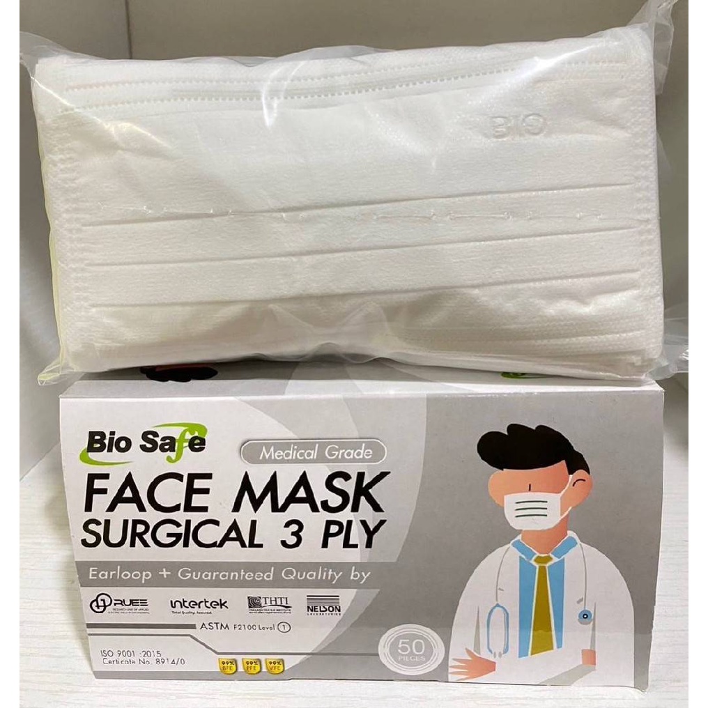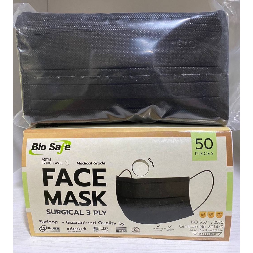 Bio Safe ไบโอเซฟ หน้ากากคาร์บอน4ชั้น บรรจุ 50ชิ้น/กล่อง (แพคชิ้นต่อชิ้น และ แพครวม)