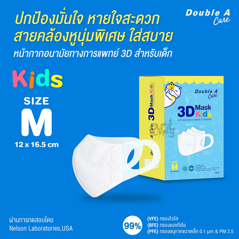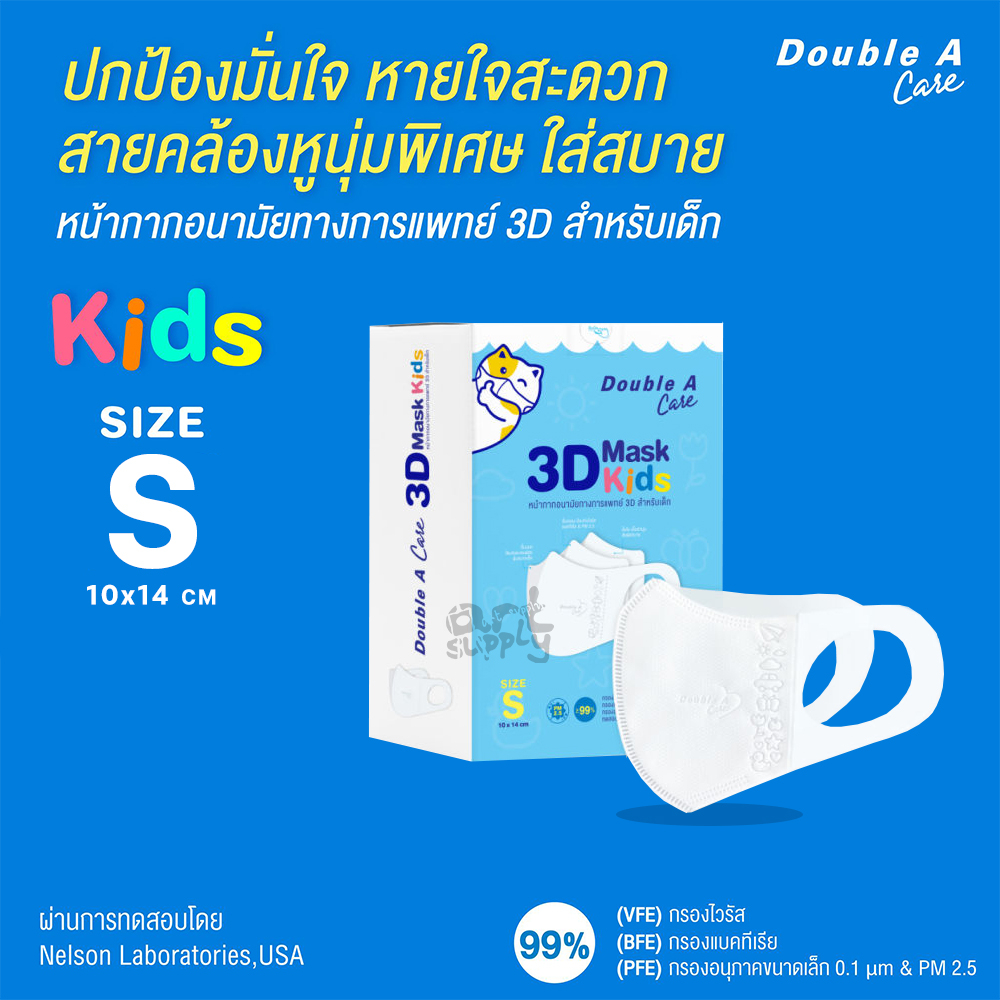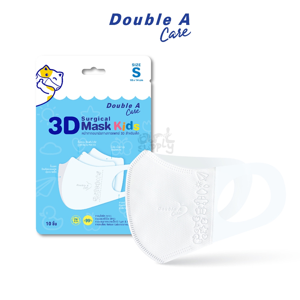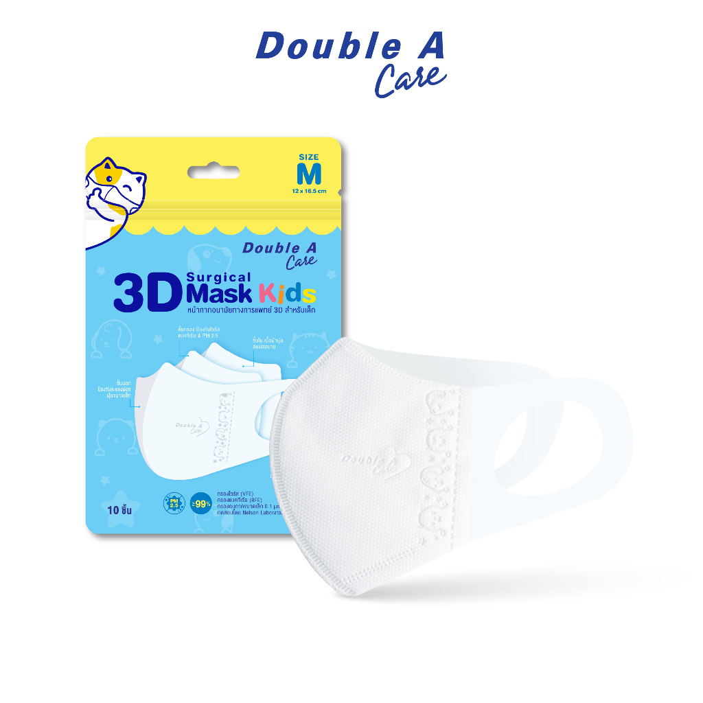Double A Care หน้ากากอนามัยทางการแพทย์ 3D Mask Kids สำหรับเด็ก Size S/M