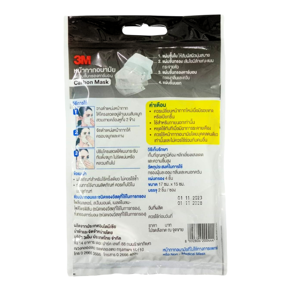 AMI หน้ากากอนามัยสีดำคาร์บอน 4 ชั้นกรอง