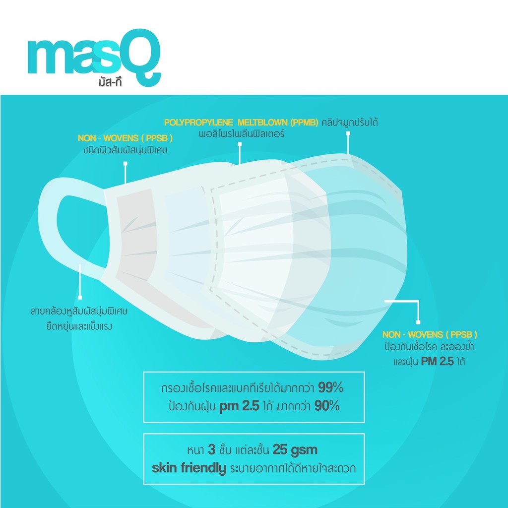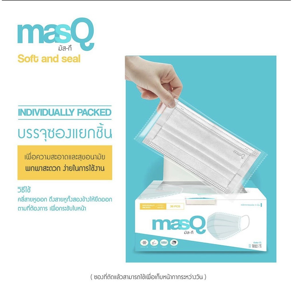 masQ มัส-กึ หน้ากากอนามัย 3 ชั้น ไม่เจ็บหู แพ็คแยกชิ้น คุณภาพใช้ในทางการแพทย์ 30 ชิ้น ป้องกันPM2.5