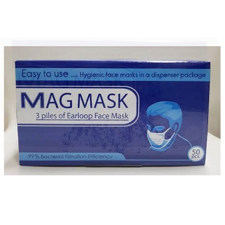 Mag Mask หน้ากากอนามัย ผู้ใหญ่ จำนวน 1 กล่อง บรรจุ 50 ขิ้น มี 3 สี ( เขียว / ฟ้า / ขาว )