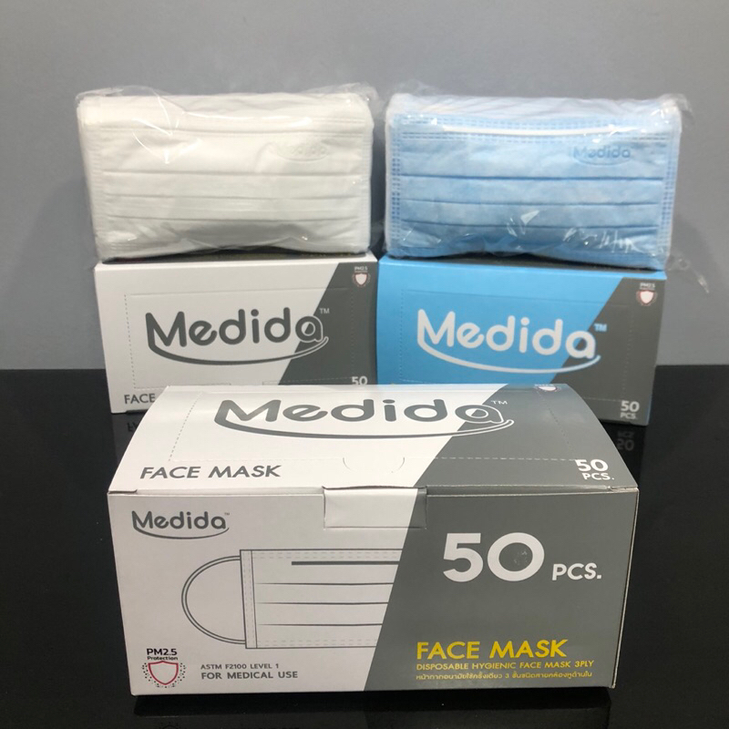 Medidaหน้ากากอนามัย 3 ชั้น ทางการแพทย์ (50ชิ้น/กล่อง)