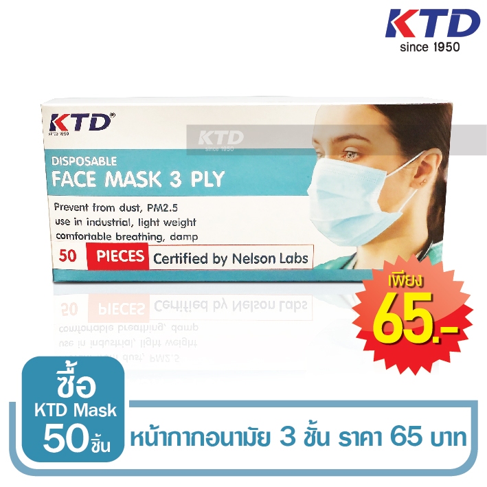 KTD Mask หน้ากากอนามัย 50 ชิ้น 3 ชั้น
