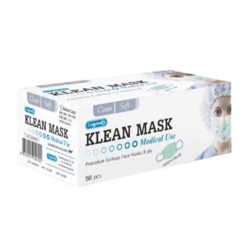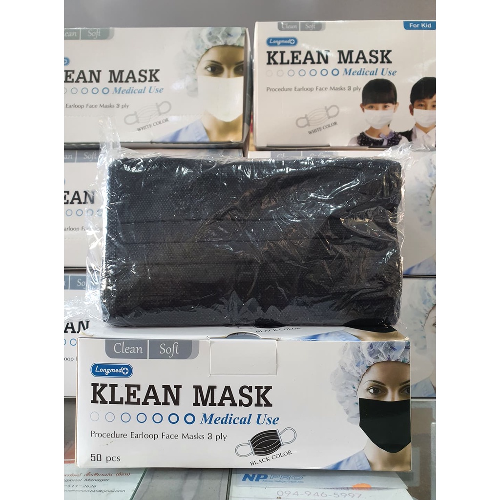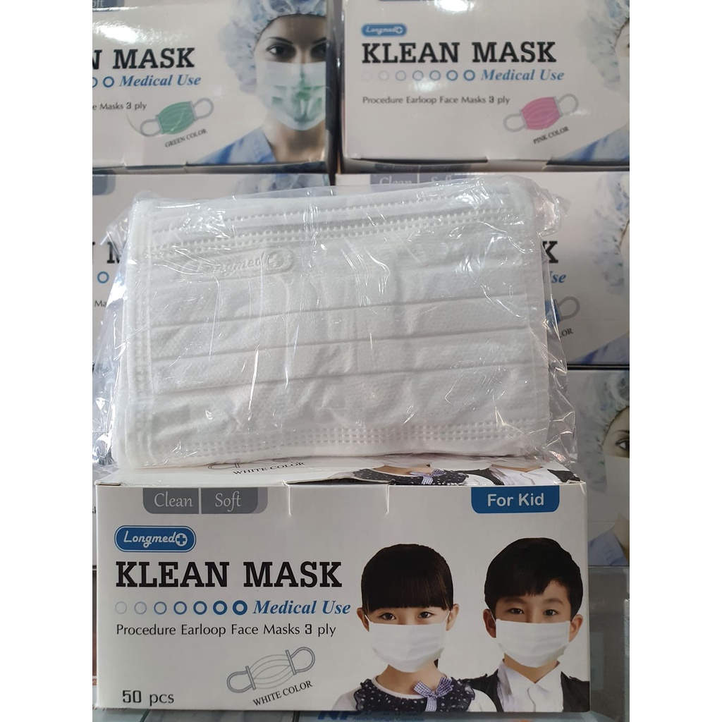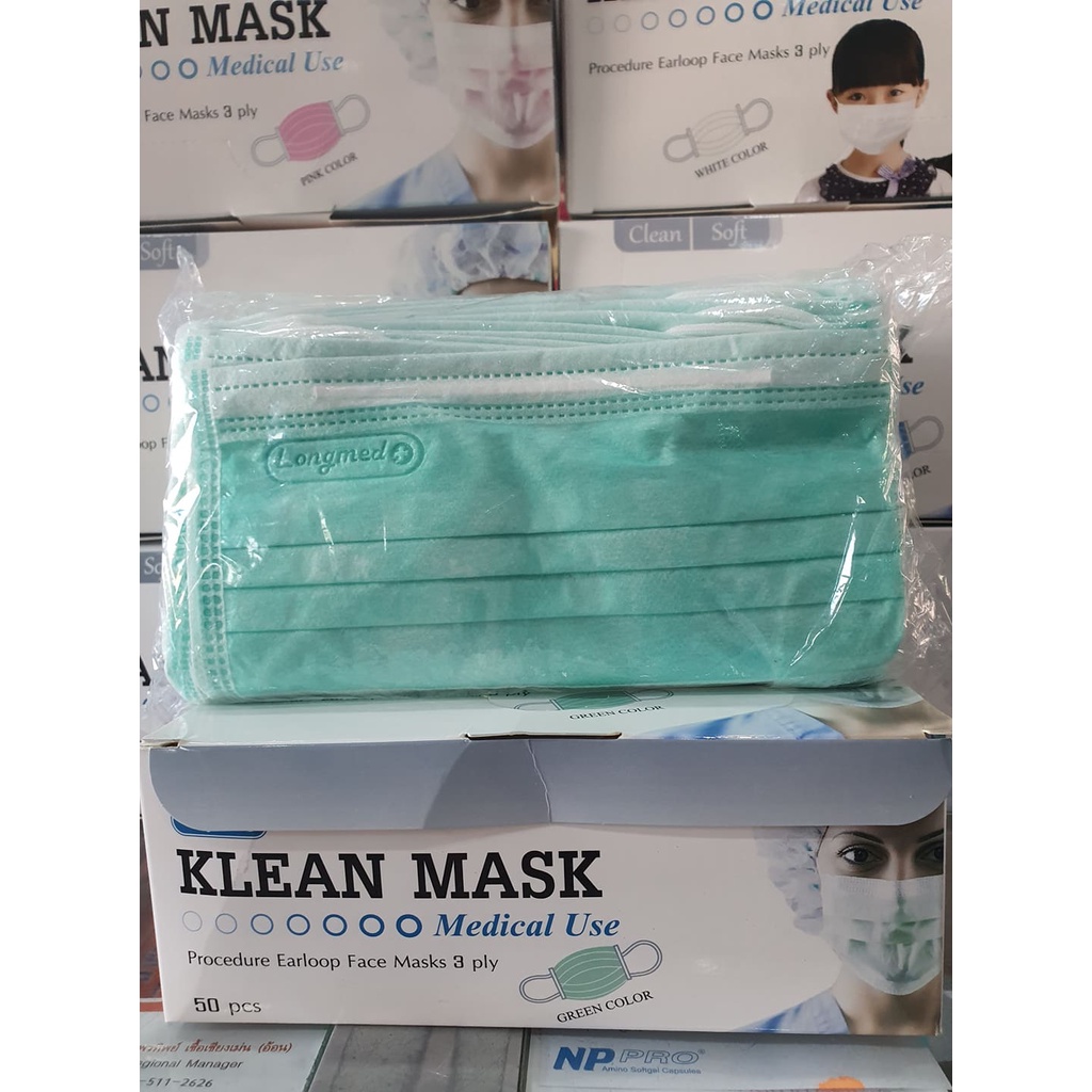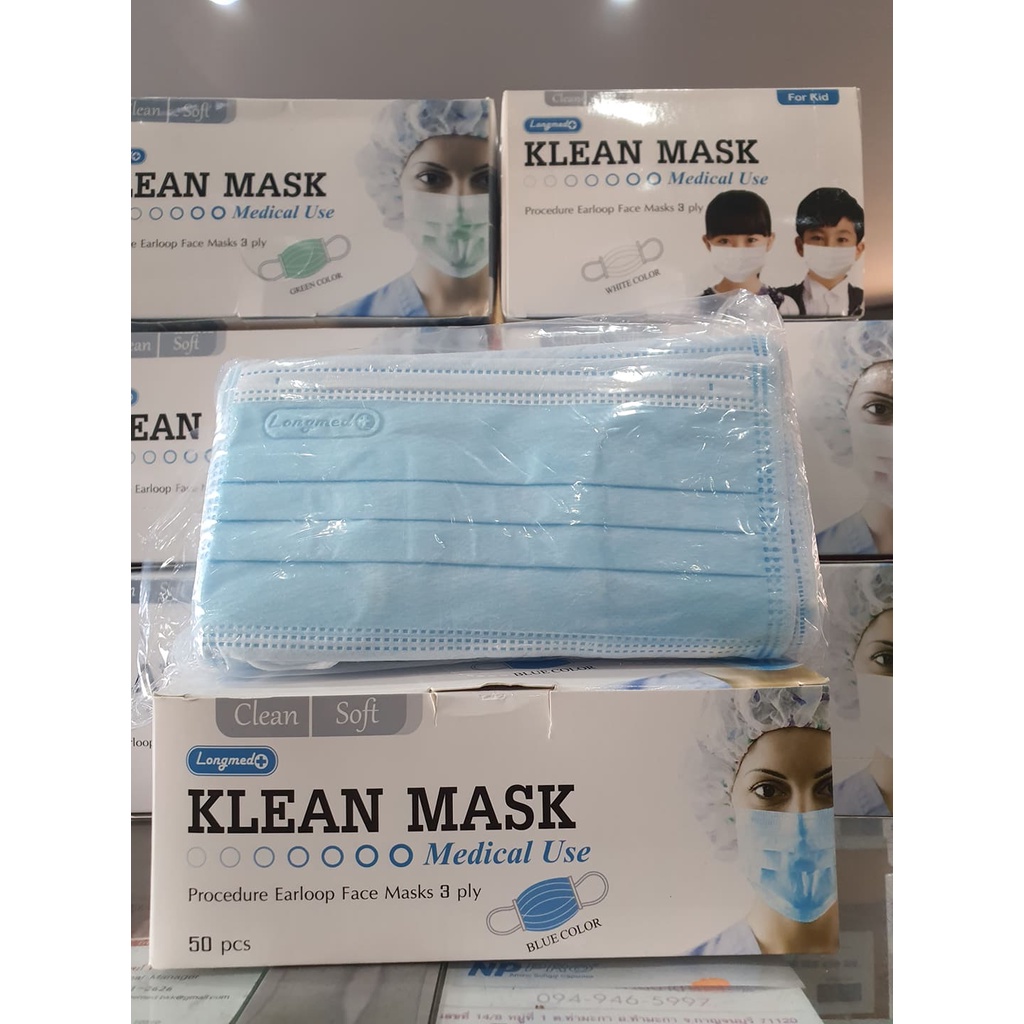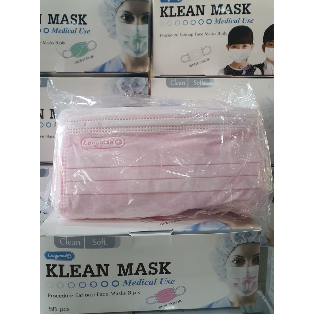 หน้ากากอนามัยทางการแพทย์ ผู้ใหญ่ LONGMED KLEAN MASK (50ชิ้น/กล่อง) มี5สี ขาว/ดำ/ชมพู/เขียว/ฟ้า