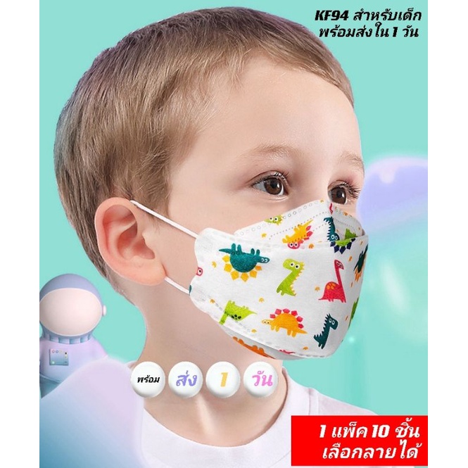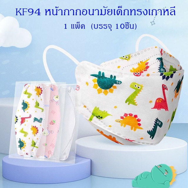 หน้ากากอนามัยเด็ก KF94 แมสเด็กกรอง4ชั้น (เลือกลายได้สีเข้ม) แพ็คละ 10 ชิ้น