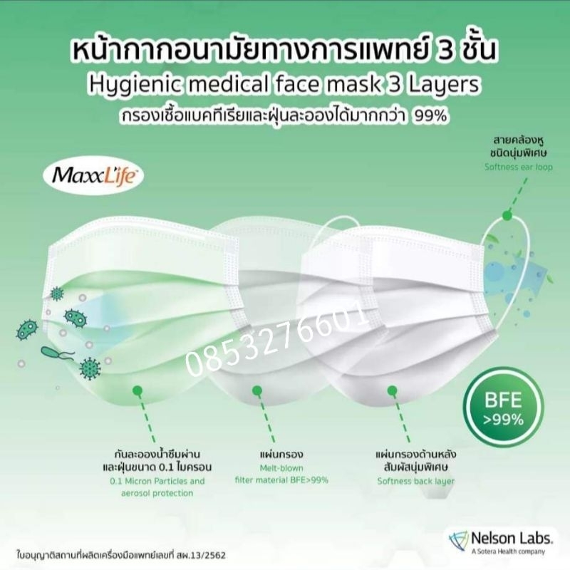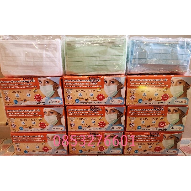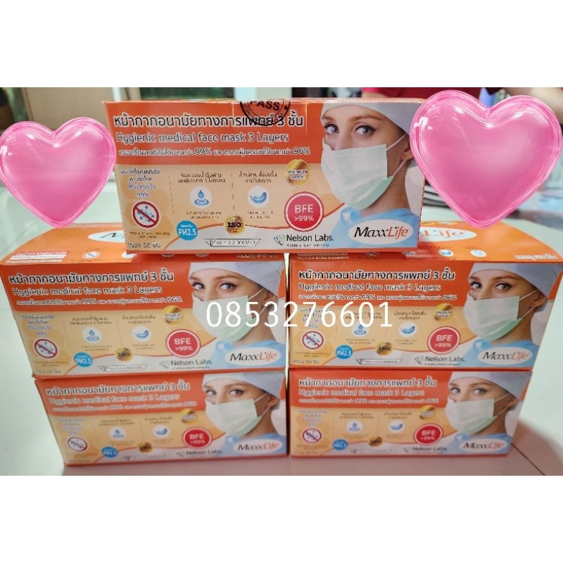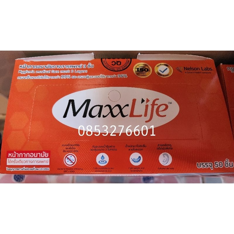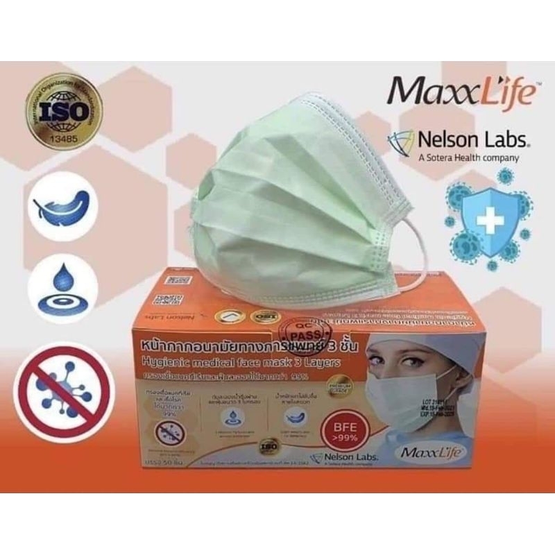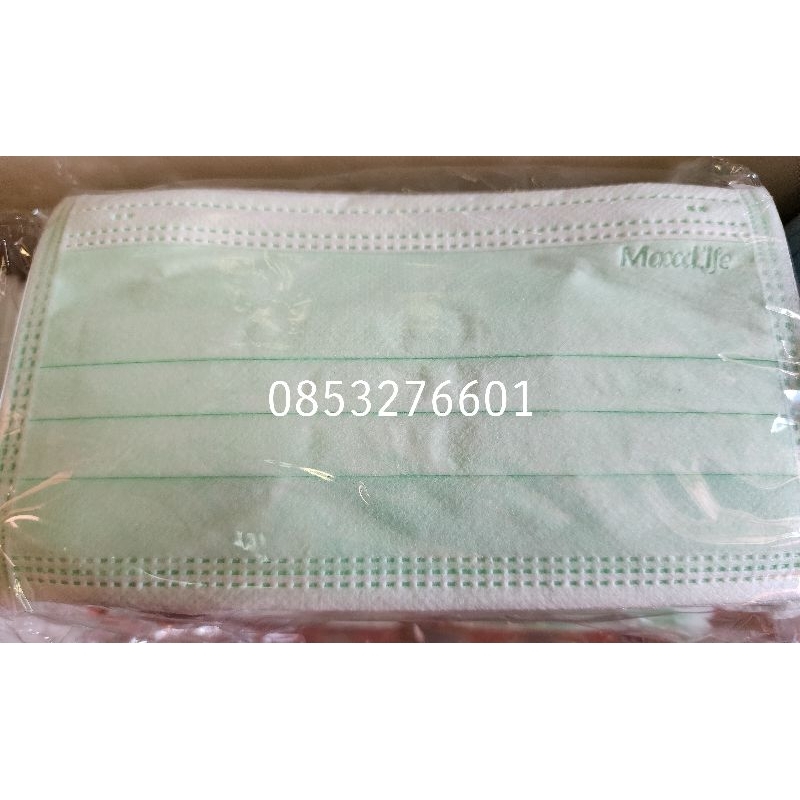 หน้ากากอนามัยMaxxLife สีเขียวกล่องละ50ชิ้น