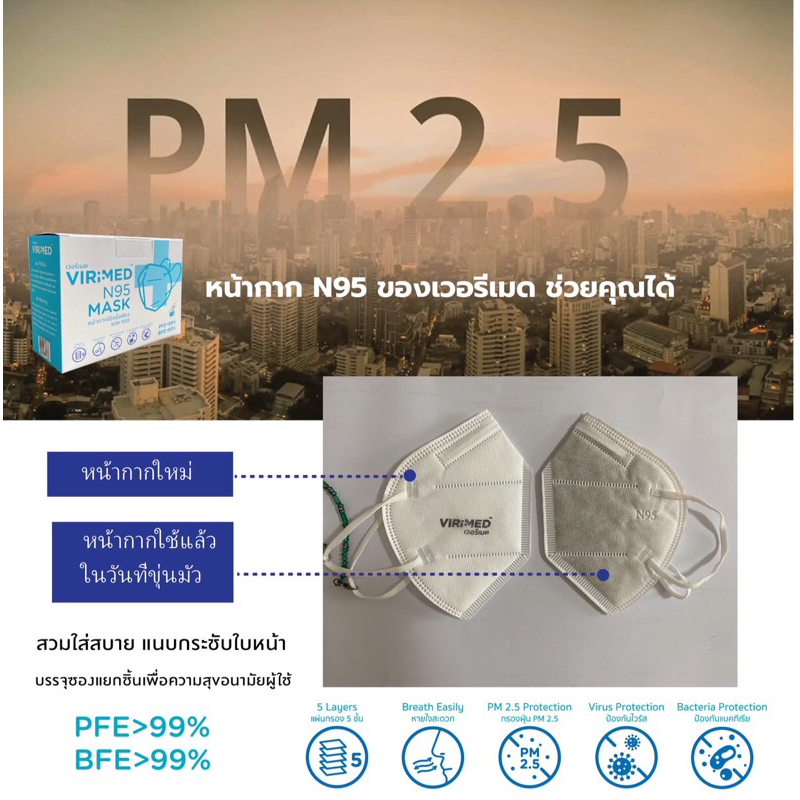 เวอรีเมด หน้ากากอนามัย N95 (ViriMed N95 repirator) 300ชิ้น ยกลัง