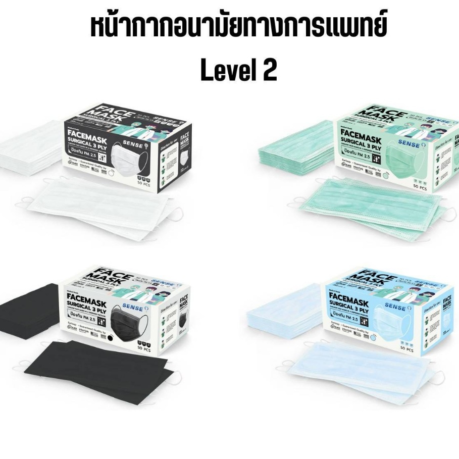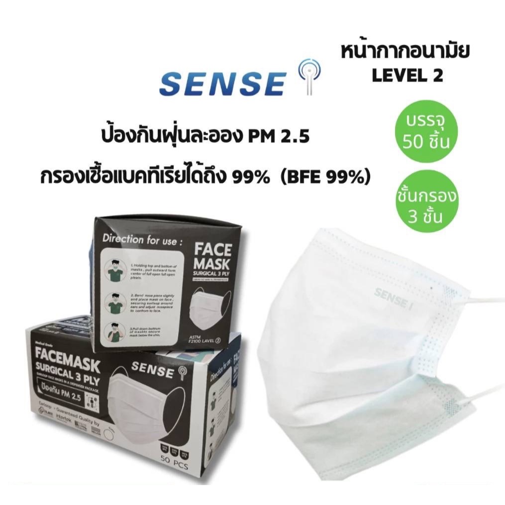 หน้ากากอนามัย SENSE หน้ากากอนามัยเกรดการแพทย์ Level 2 หนา 3 ชั้น สำหรับป้องกันฝุ่นละอองและเชื้อโรคต่างๆ