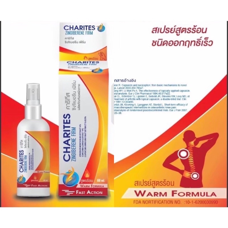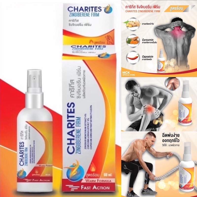 (ล็อตใหม่สุด) Charites Zingiberene Firm Spray 60 ml สเปรย์สูตรร้อน บรรเทาอาการปวดเมื่อยกล้ามเนื้อ (1 ขวด)