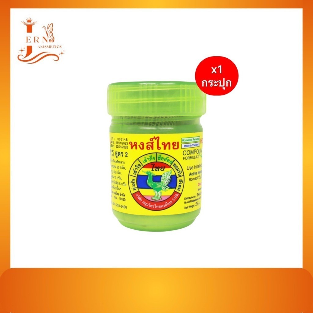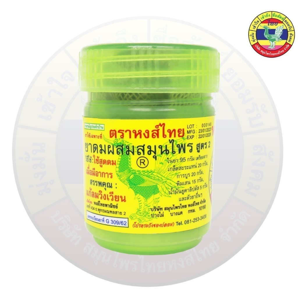 [1กระปุก] ยาดมสมุนไพร ตรา หงส์ไทย(HONGTHAI) บรรเทาอาการคัดจมูกเนื่องจากหวัด กระปุกสีเขียว ของแท้ ขนาด5-10กรัม