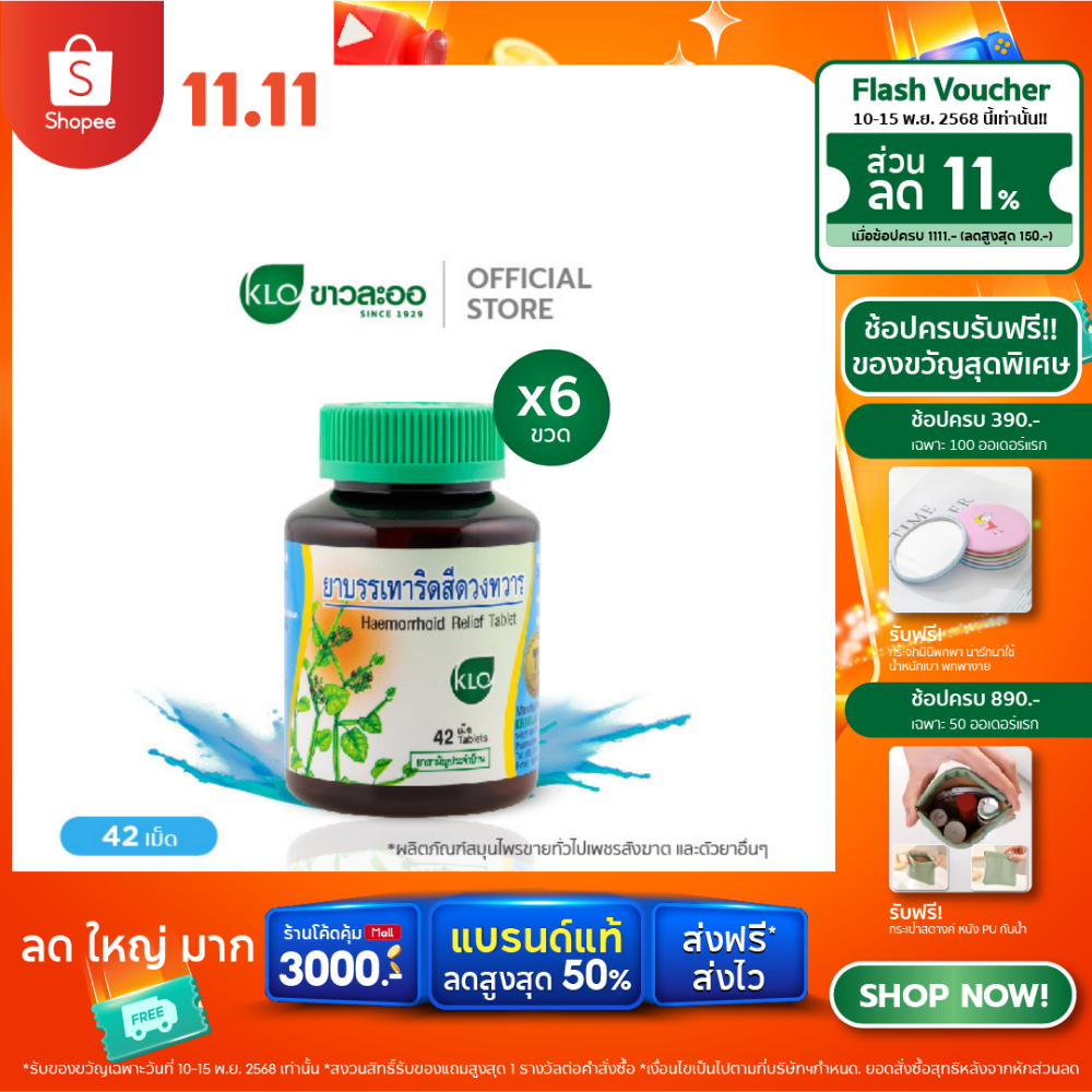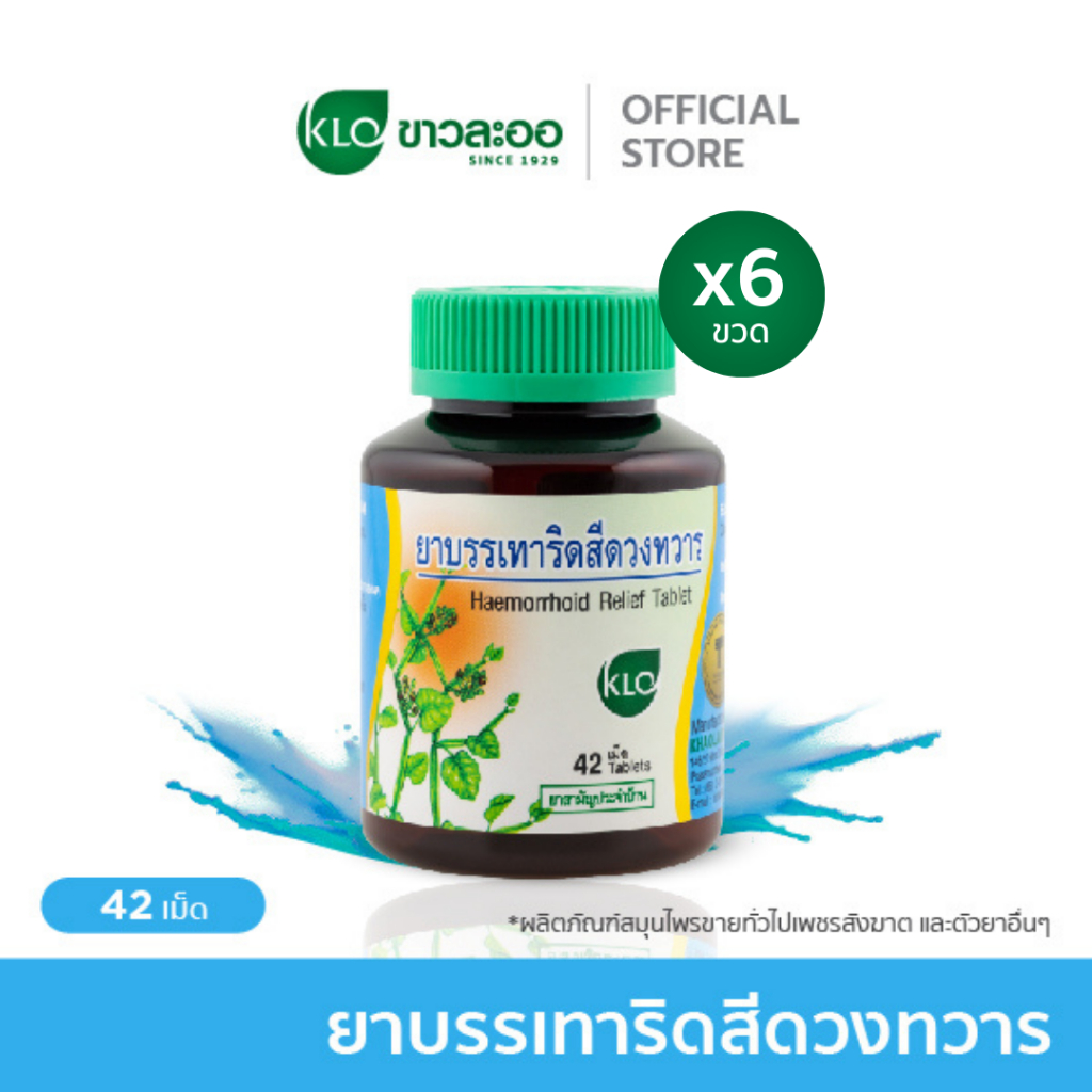 (แพ็ค 6) Khaolaor ขาวละออ ยาบรรเทาอาการริดสีดวงทวาร ยาสามัญประจำบ้าน 42 เม็ด/ขวด