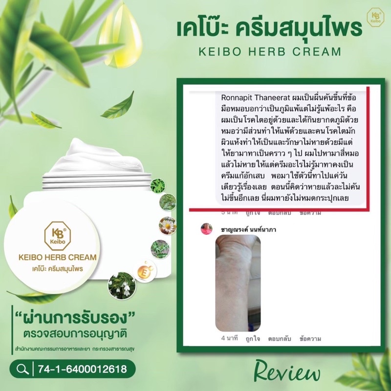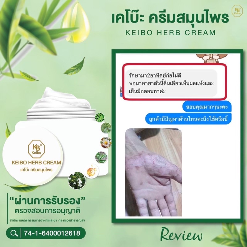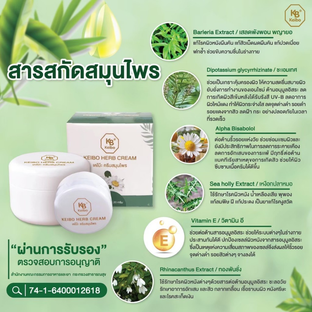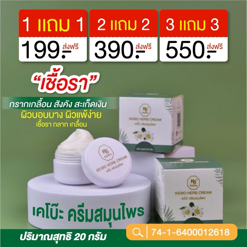 [พร้อมส่ง+ส่งฟรี] KB สมุนไพรเคโบ๊ะ Keibo ขนาด 20 กรัม คัน เชื้อรา กากเกลื้อน ผื่นคัน ( ส่งฟรี)