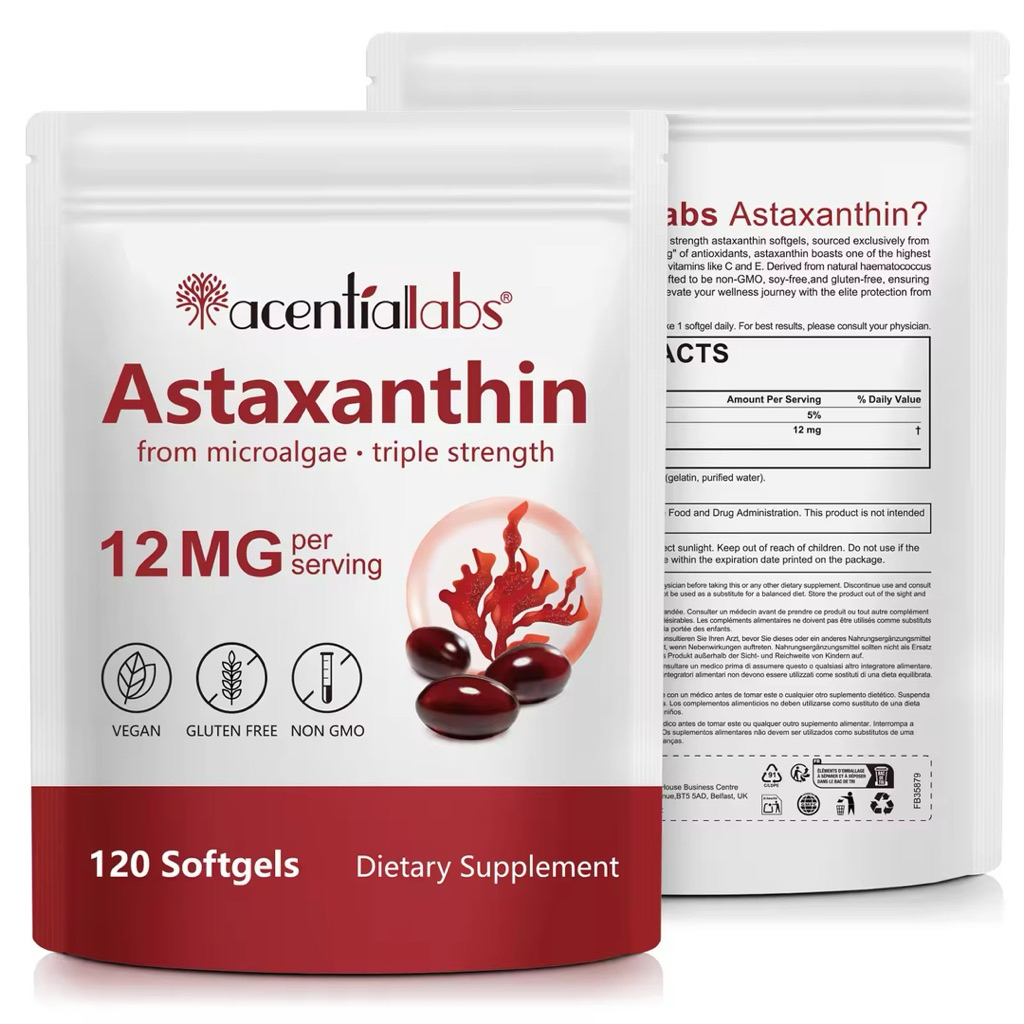 Astaxanthin 12mg 120 ซอฟเจล (4 เดือน) | อาหารเสริมต้านอนุมูลอิสระ บำรุงผิว ลดริ้วรอย เสริมภูมิคุ้มกัน