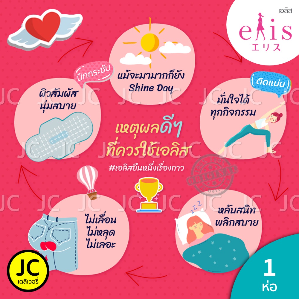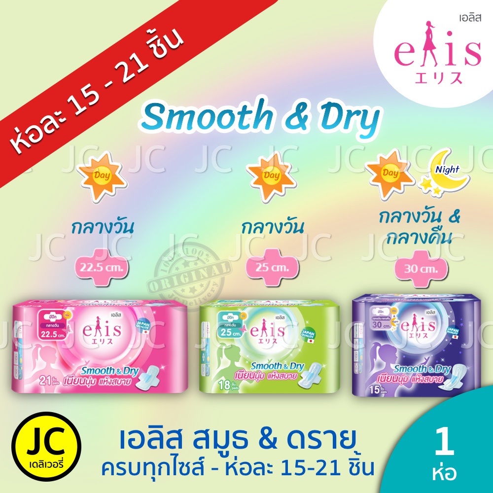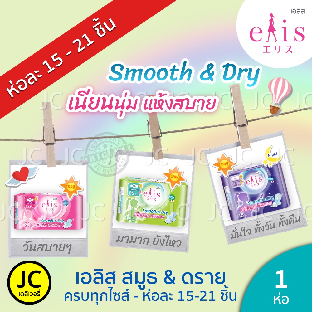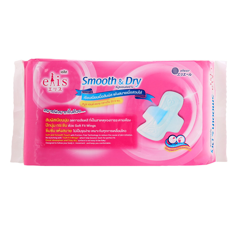 Elis Smooth & Dry เอลิส สมูทแอนด์ดราย ผ้าอนามัยแบบมีปีก 22.5 cm. / 25 cm. / 30 cm.