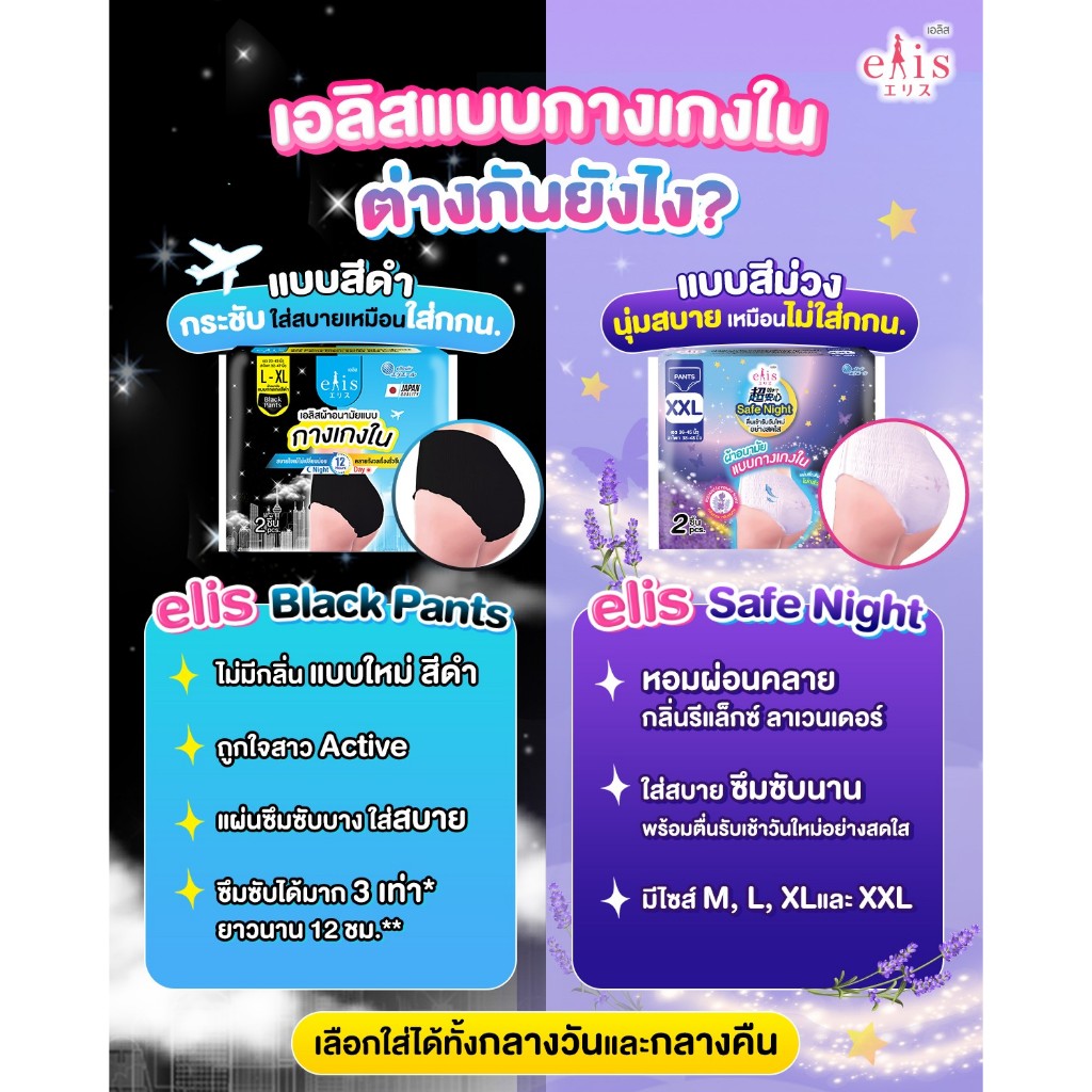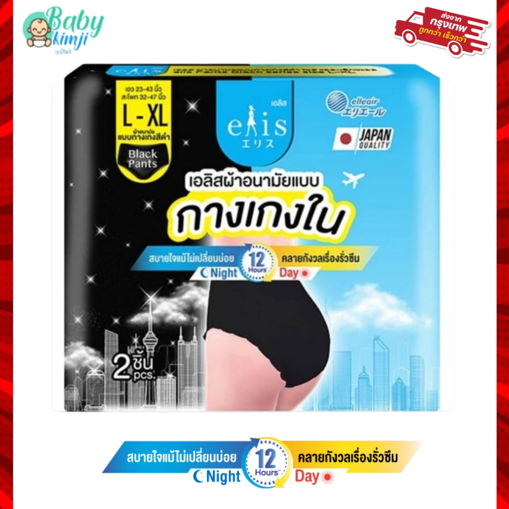 Elis เอลิส ผ้าอนามัยแบบกางเกง สีดำ L-XL (1แพค/2 ชิ้น)