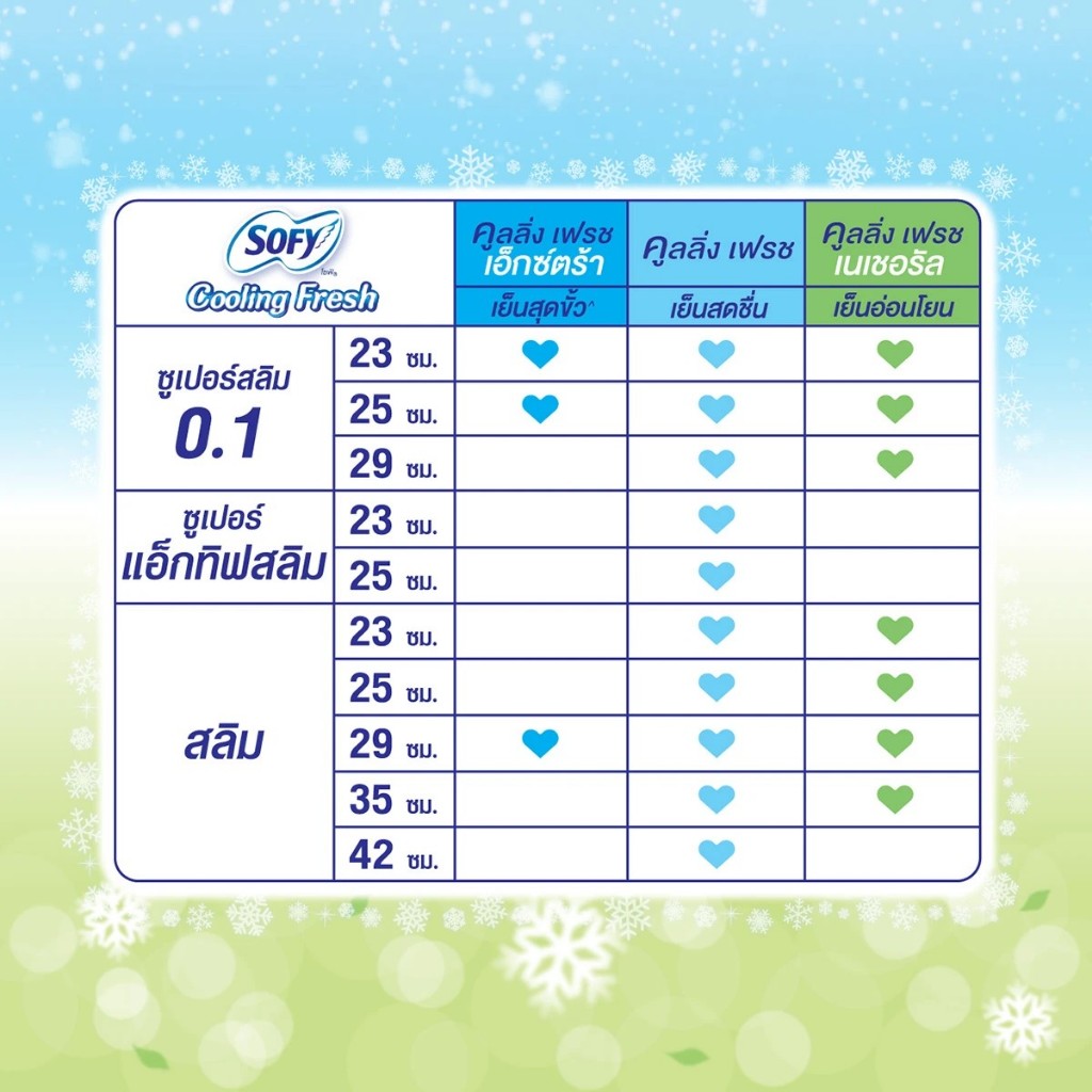 โซฟี คูลลิ่งเฟรช ผ้าอนามัย ซูเปอร์สลิม 0.1 มีปีก 23 ซม. 16 ชิ้น/Sofy Airfit Coolong Super Slim 0.1 Wing 23 Cm. 16 Pcs.