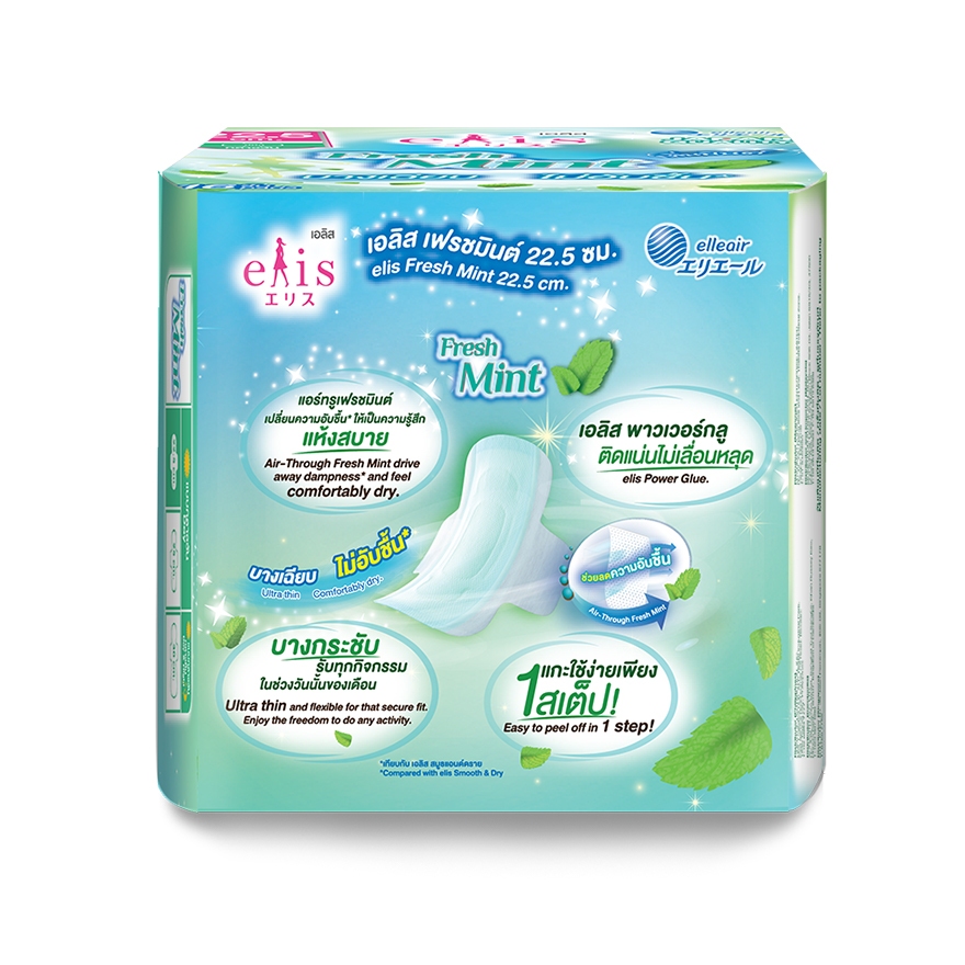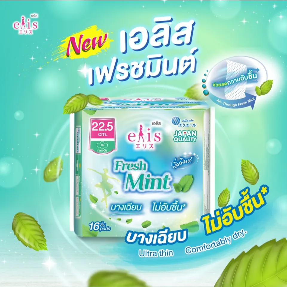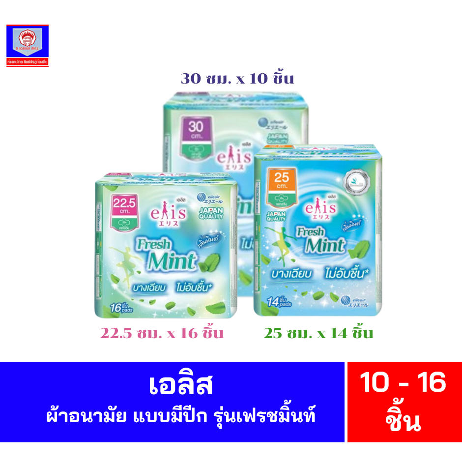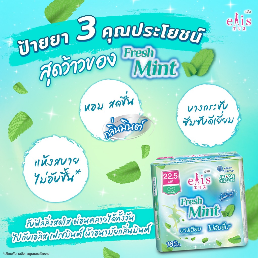 เอลิส เฟรชมินต์ ผ้าอนามัย มีปีก สำหรับกลางวัน ขนาด 22.5 ซม. แพ็ค 16 ชิ้น / Elis Fresh Mint 22.5 cm. 16 pcs
