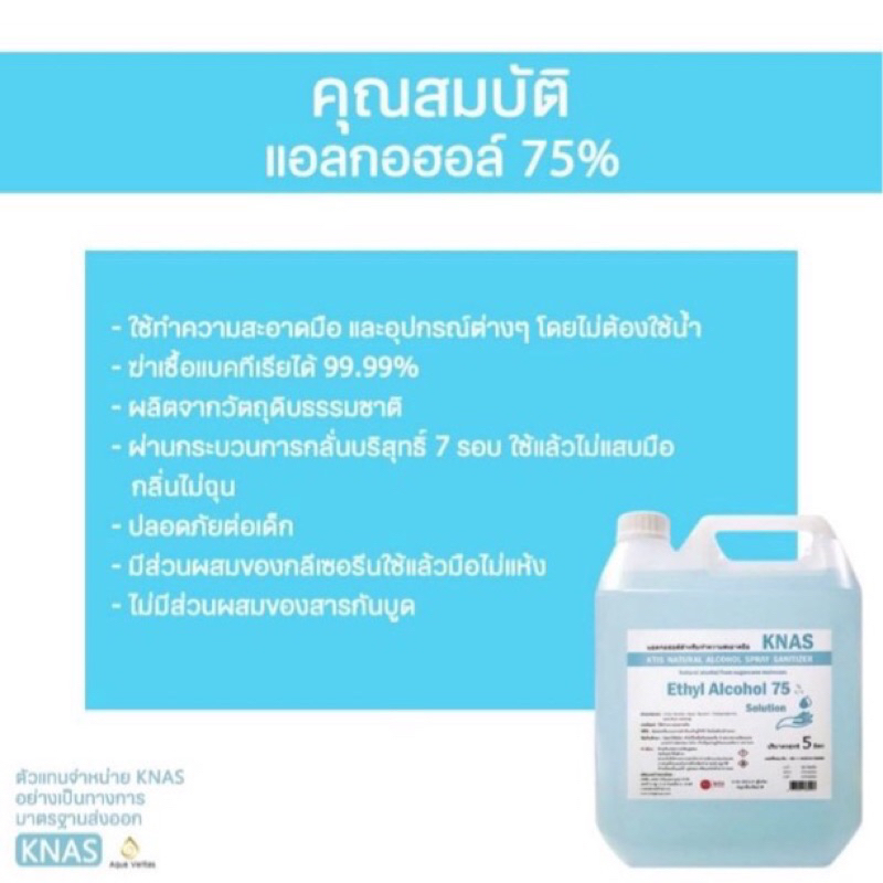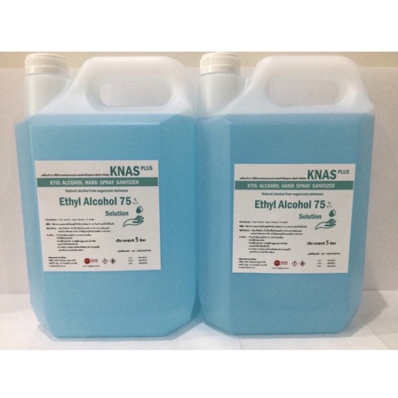 KNAS PLUS (แพ็คคู่ 2 แกลลอน) สเปรย์แอลกอฮอล์สำหรับทำความสะอาดมือ 75% ปริมาตรสุทธิ 5 ลิตร