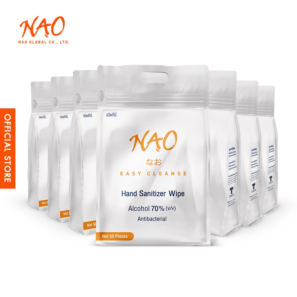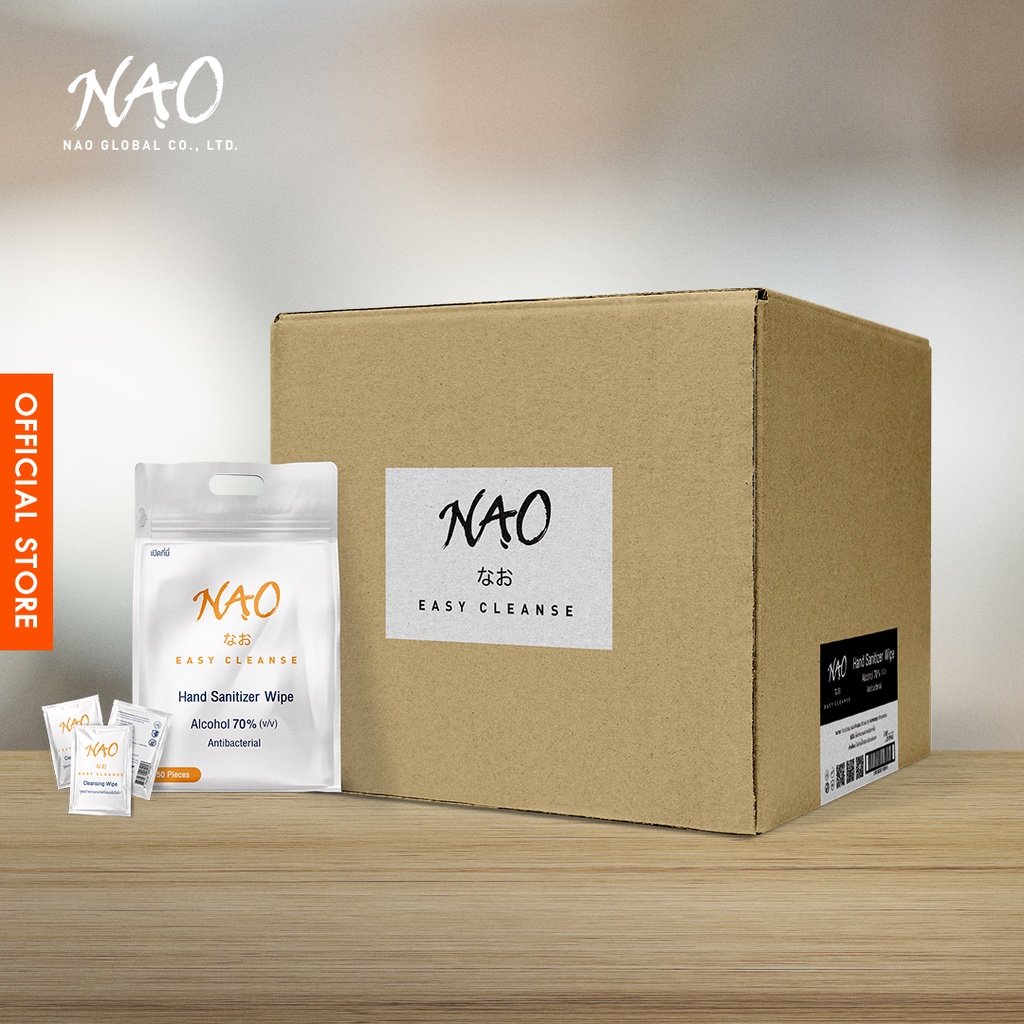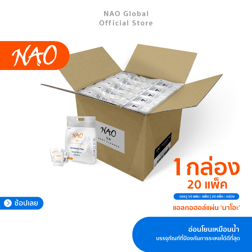 [ยกลัง] NAO แผ่นแอลกอฮอล์ 70% (v/v) 15x12cm 50 ชิ้น | pH7อ่อนโยนเหมือนน้ำ | ป้องกันการระเหยได้ดีที่สุด | บรรจุ 1000 แผ่น
