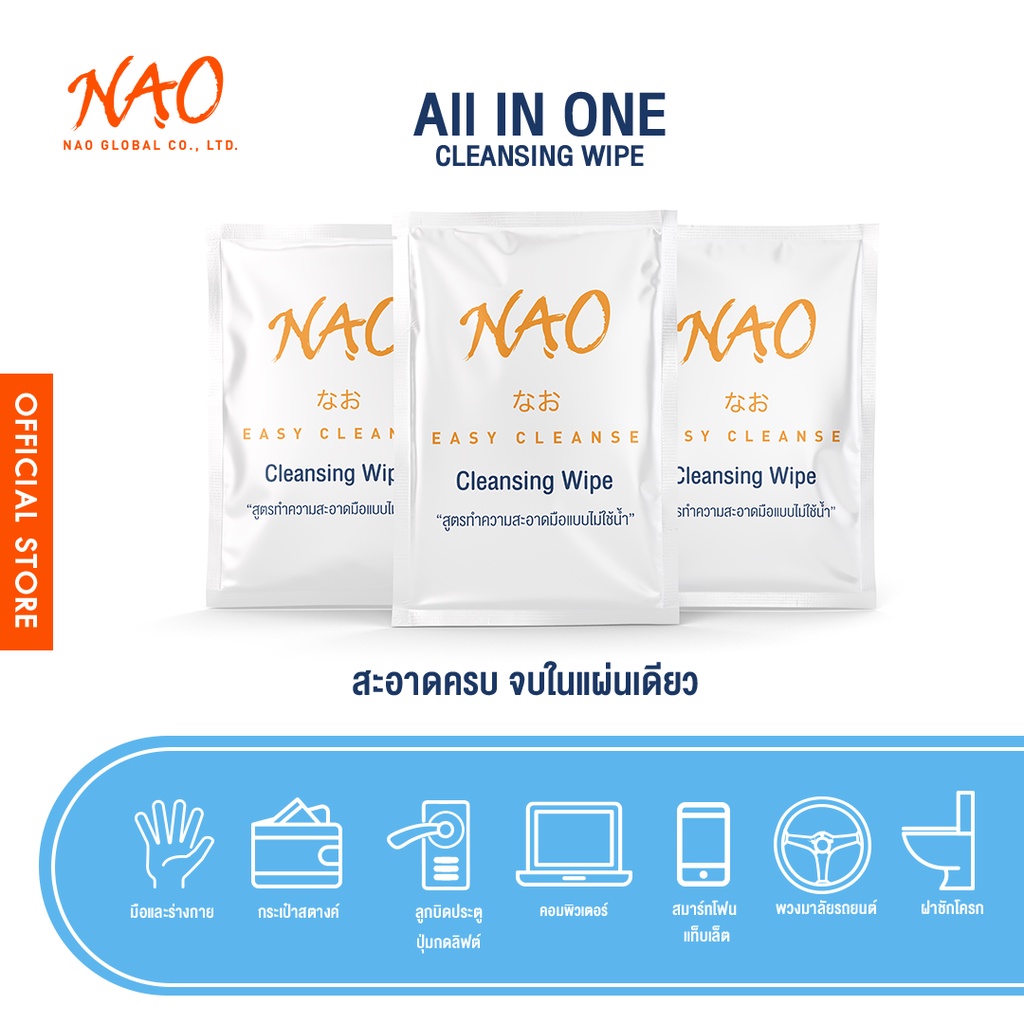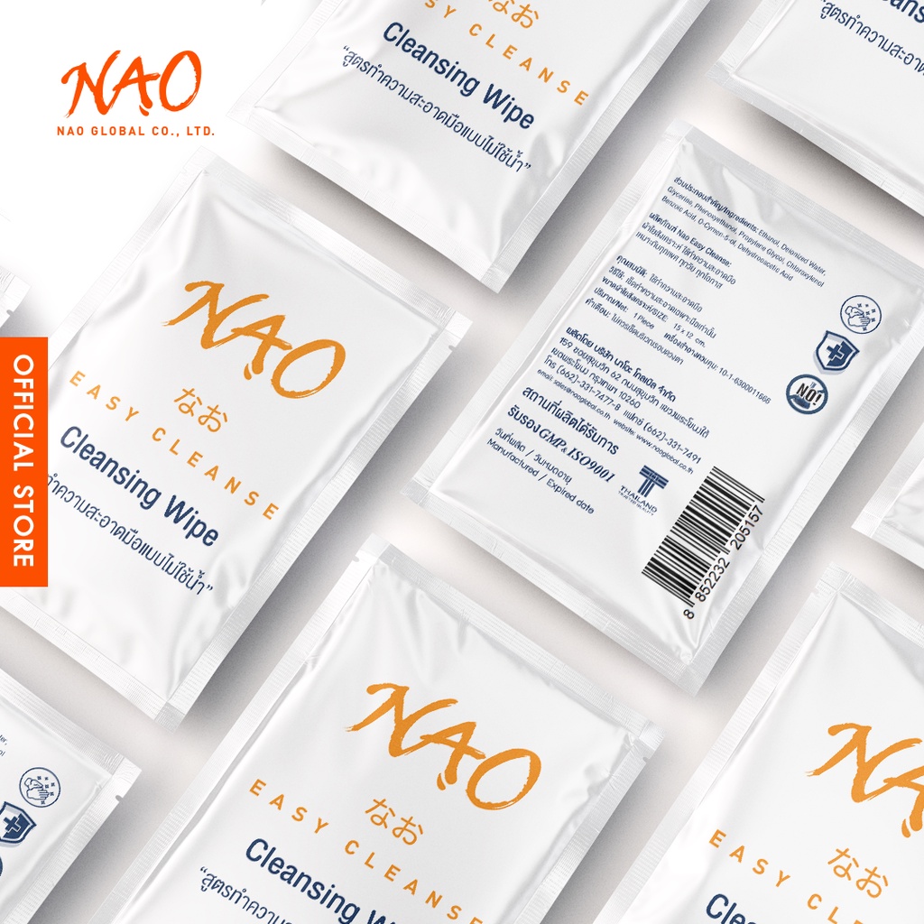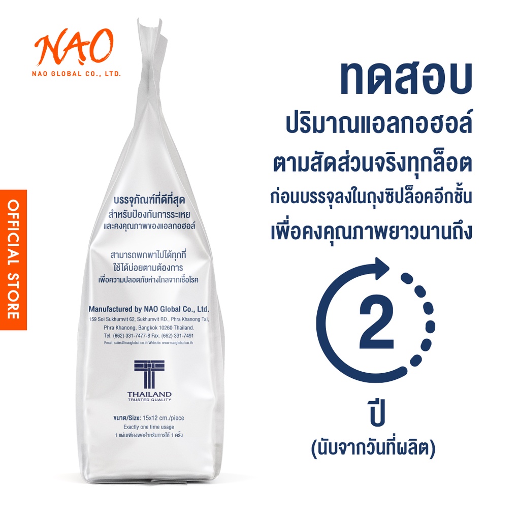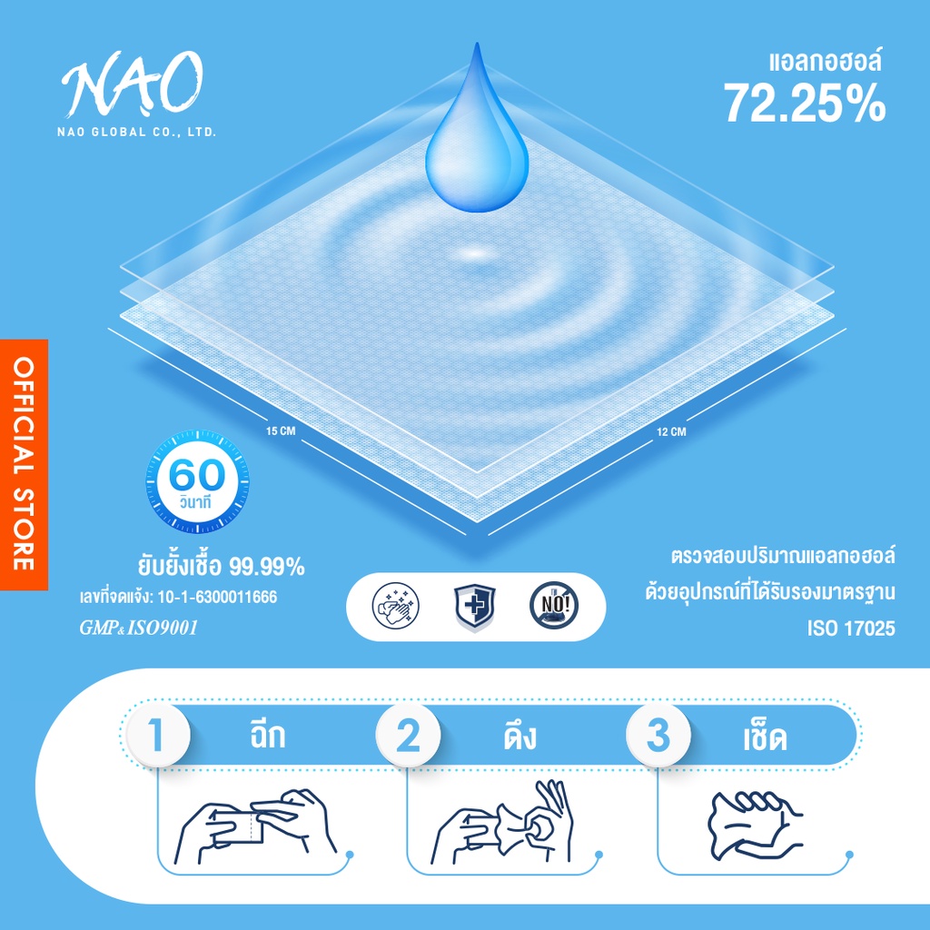 [ยกลัง] NAO แผ่นแอลกอฮอล์ 70% (v/v) 15x12cm 50 ชิ้น | pH7อ่อนโยนเหมือนน้ำ | ป้องกันการระเหยได้ดีที่สุด | บรรจุ 1000 แผ่น