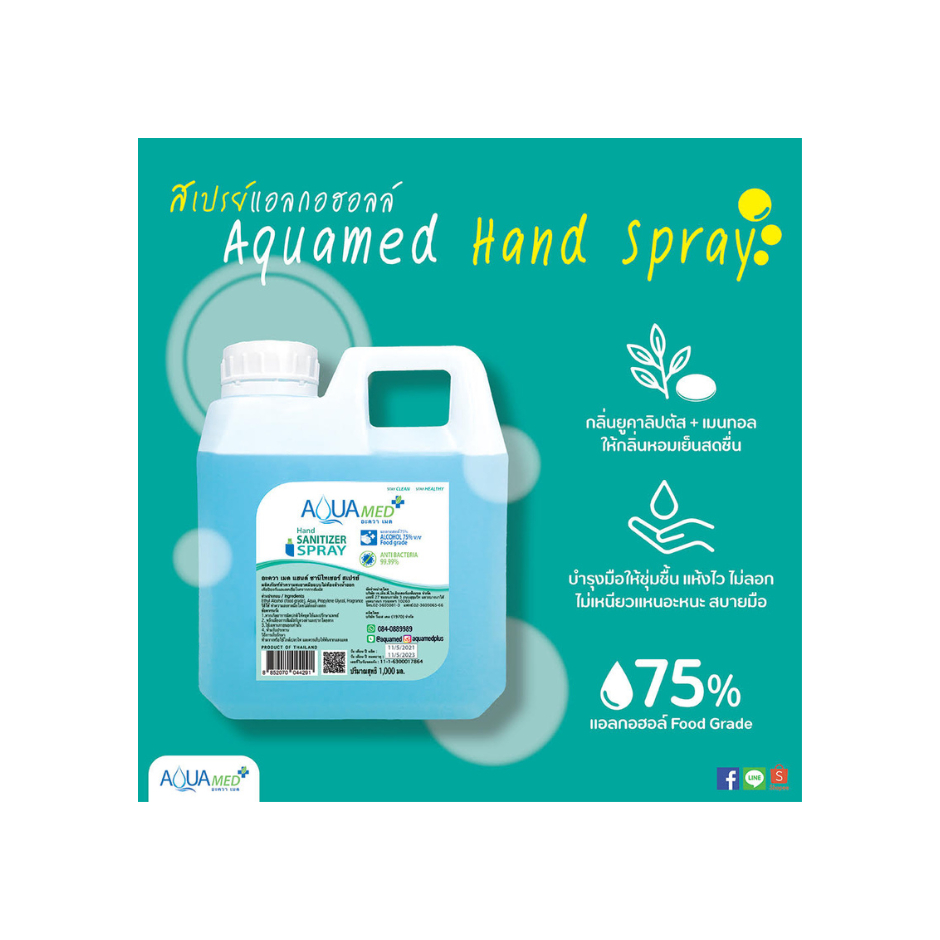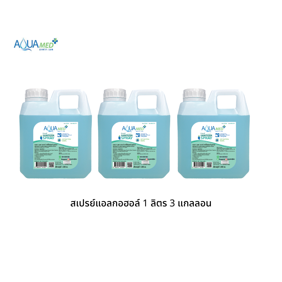 Aquamed สเปรย์แอลกอฮอล์ ทำความสะอาดมือ กลิ่นยูคาลิปตัส 1 ลิตร 3 แกลลอน