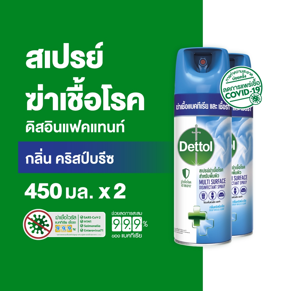 Dettol เดทตอล สเปรย์ฆ่าเชื้อเดทตอล สเปรย์ทำความสะอาด ดิสอินเฟคแทนท์ สูตรคริสป์บรีซ 450มล.X2