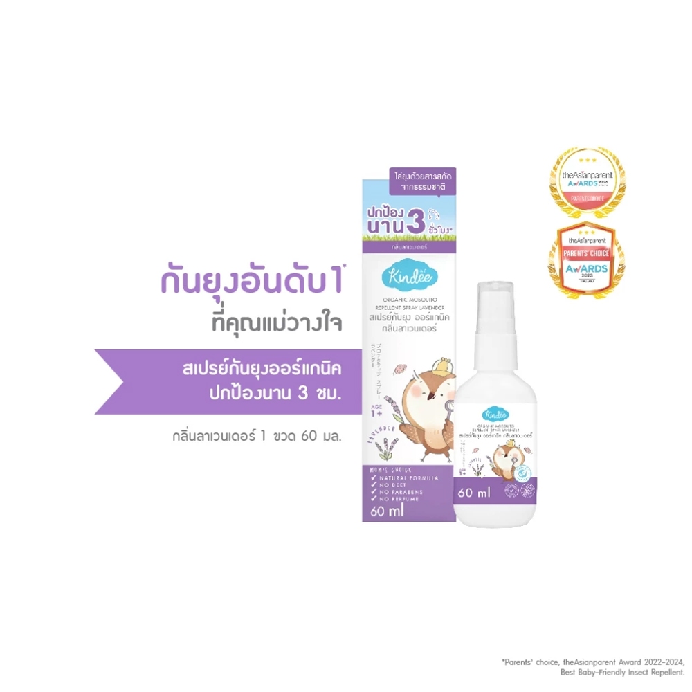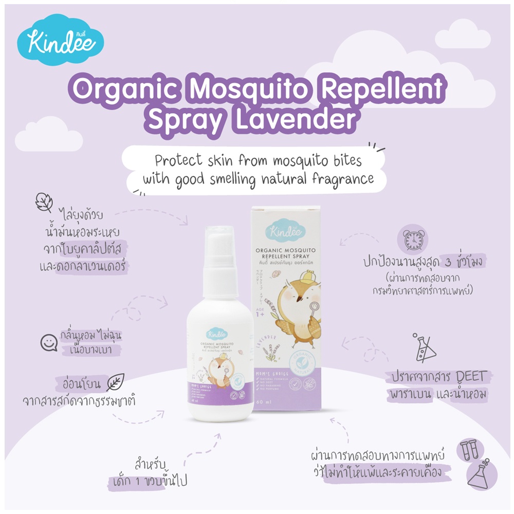 Kindee Protective Spray Lavender 60 ml. -คินดี้ สเปรย์กันยุงสำหรับเด็ก กลิ่นลาเวนเดอร์ 60 มล.