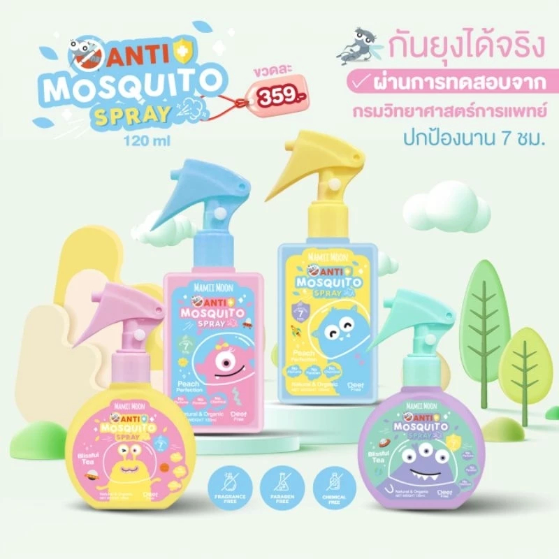 MAMIIMOON สเปรย์กันยุง สูตรน้ำมันหอมระเหยธรรมชาติ ปกป้องนาน 7 ชม. ANTI-MOSQUITO SPRAY (12m+)