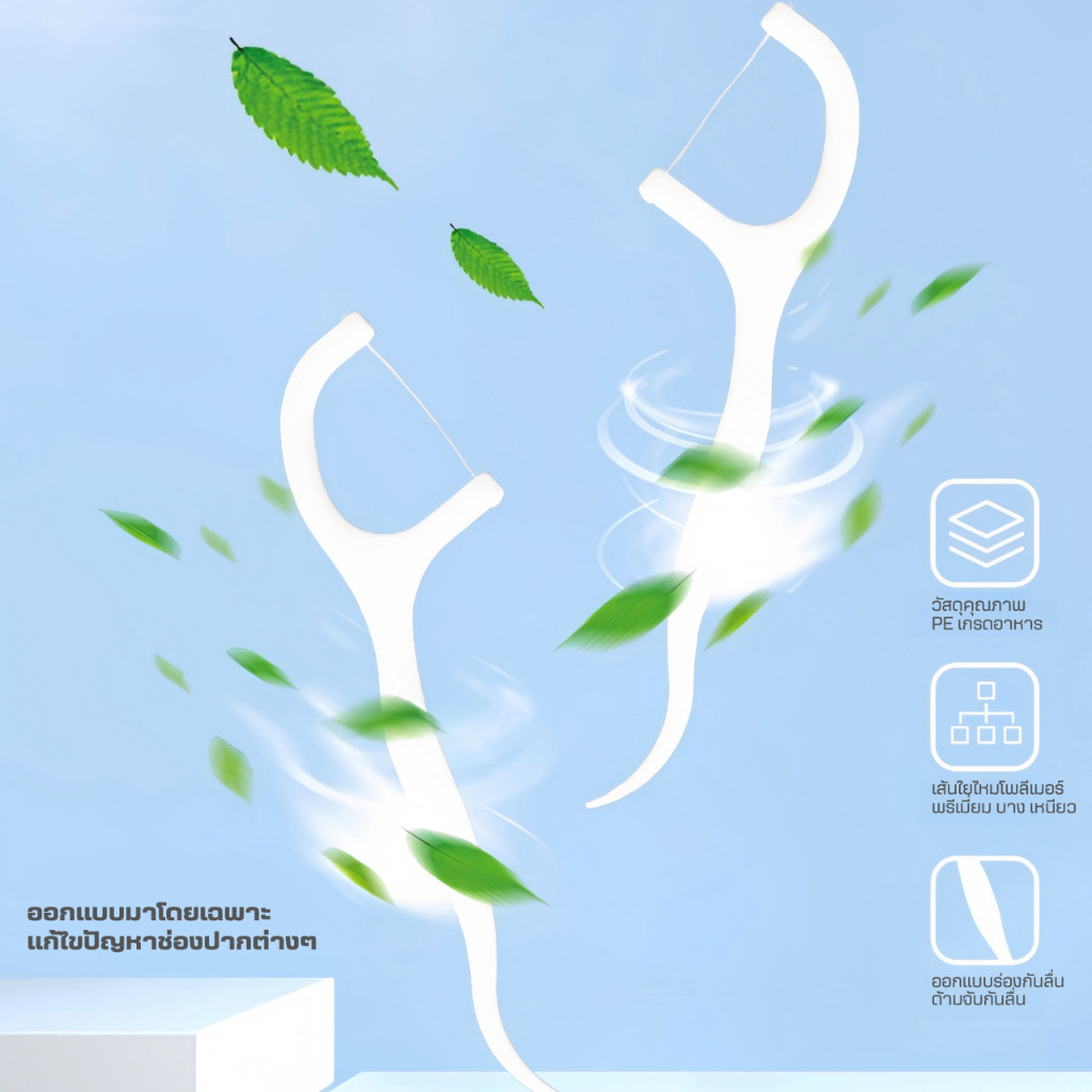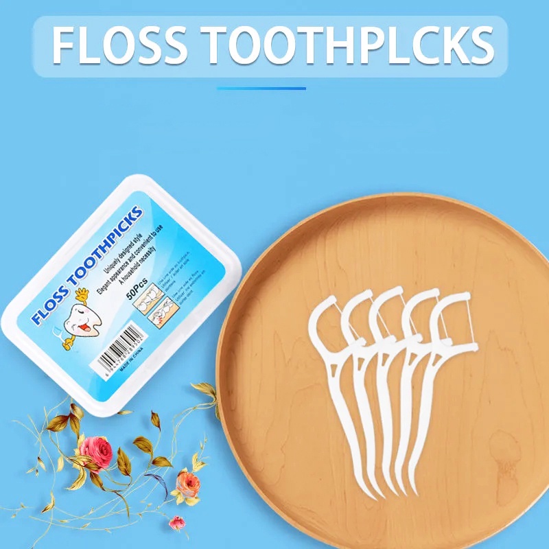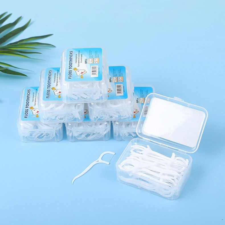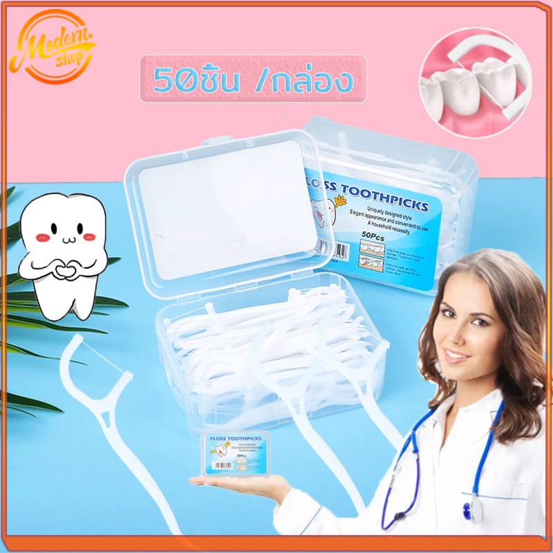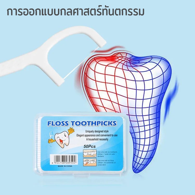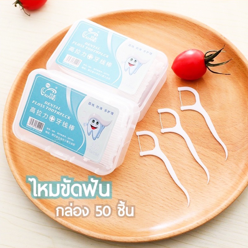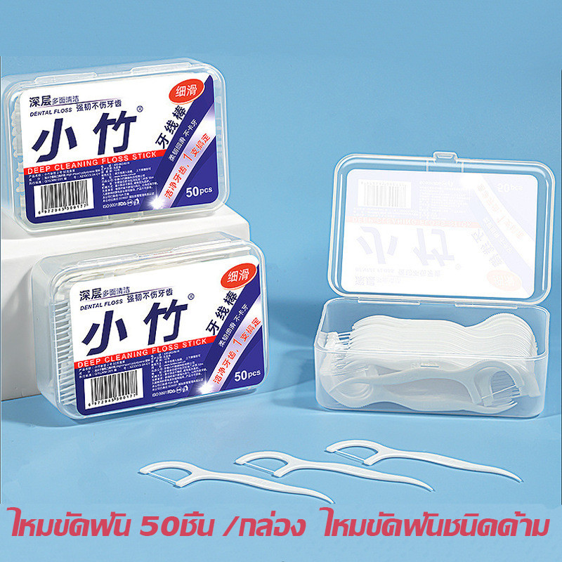 ไหมขัดฟัน 50ชิ้น /กล่อง ไหมขัดฟันชนิดด้าม ไหมขัดฟันแบบแท่ง เขี่ยเศษอาหารตามซอกฟัน อุปกรณ์ทำความสะอาดช่องปาก พร้อมส่ง