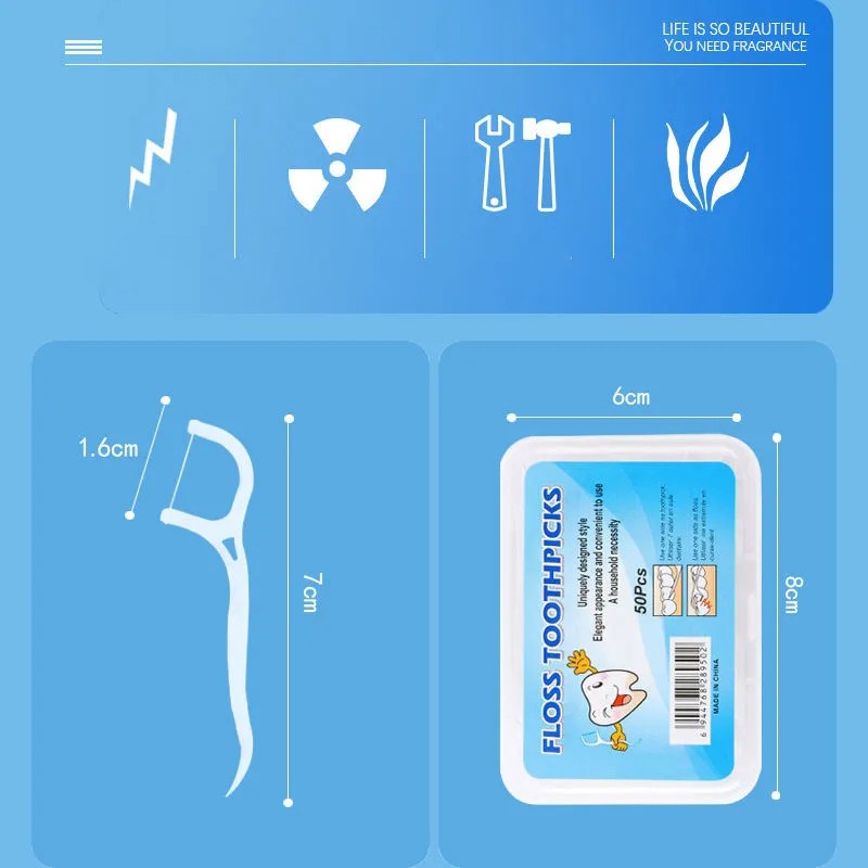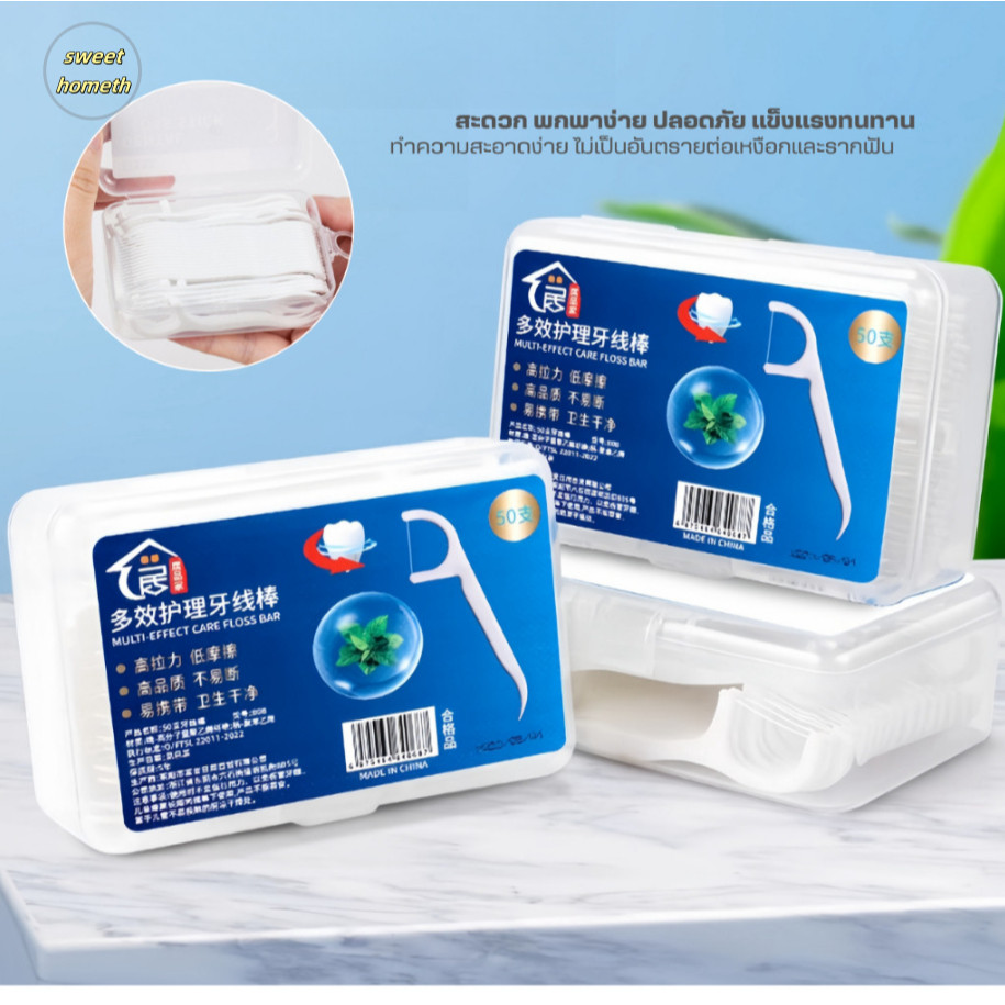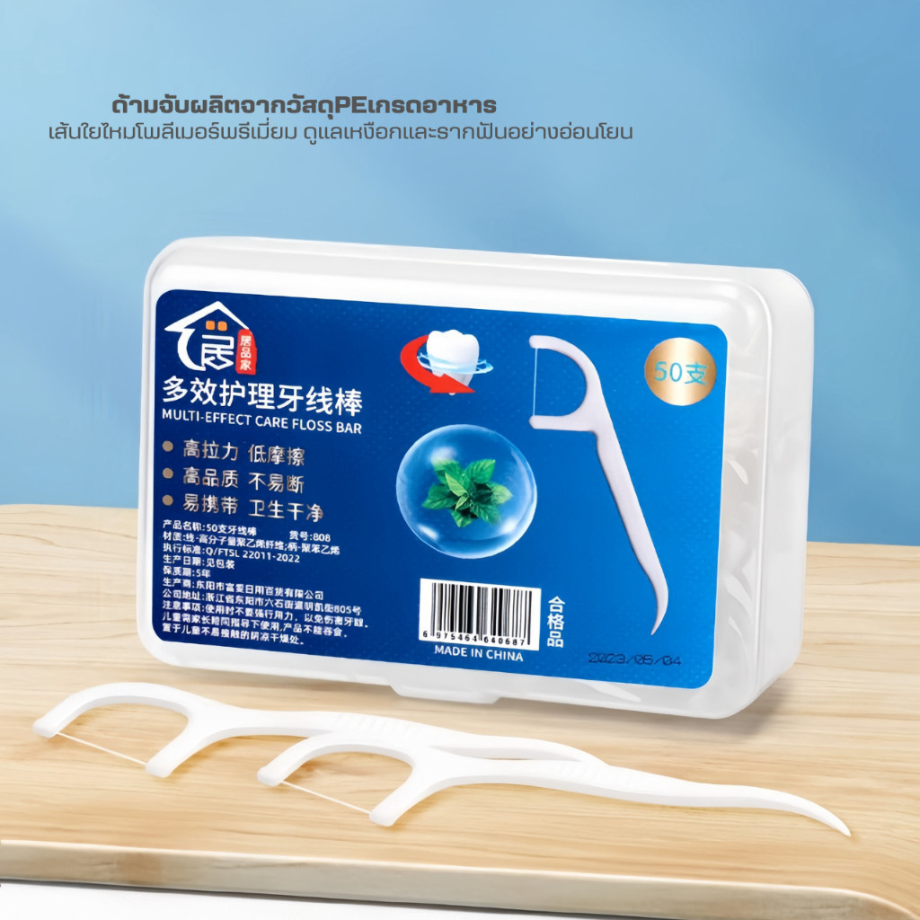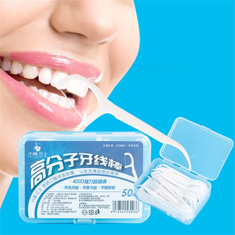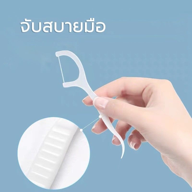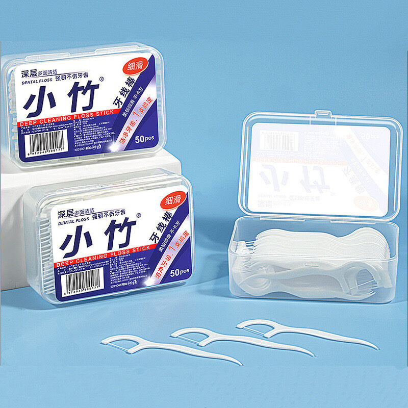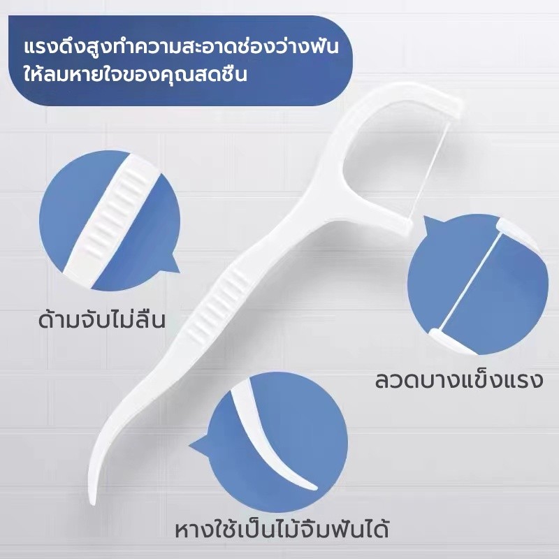 ไหมขัดฟัน 50ชิ้น /กล่อง ไหมขัดฟันชนิดด้าม ไหมขัดฟันแบบแท่ง เขี่ยเศษอาหารตามซอกฟัน อุปกรณ์ทำความสะอาดช่องปาก พร้อมส่ง