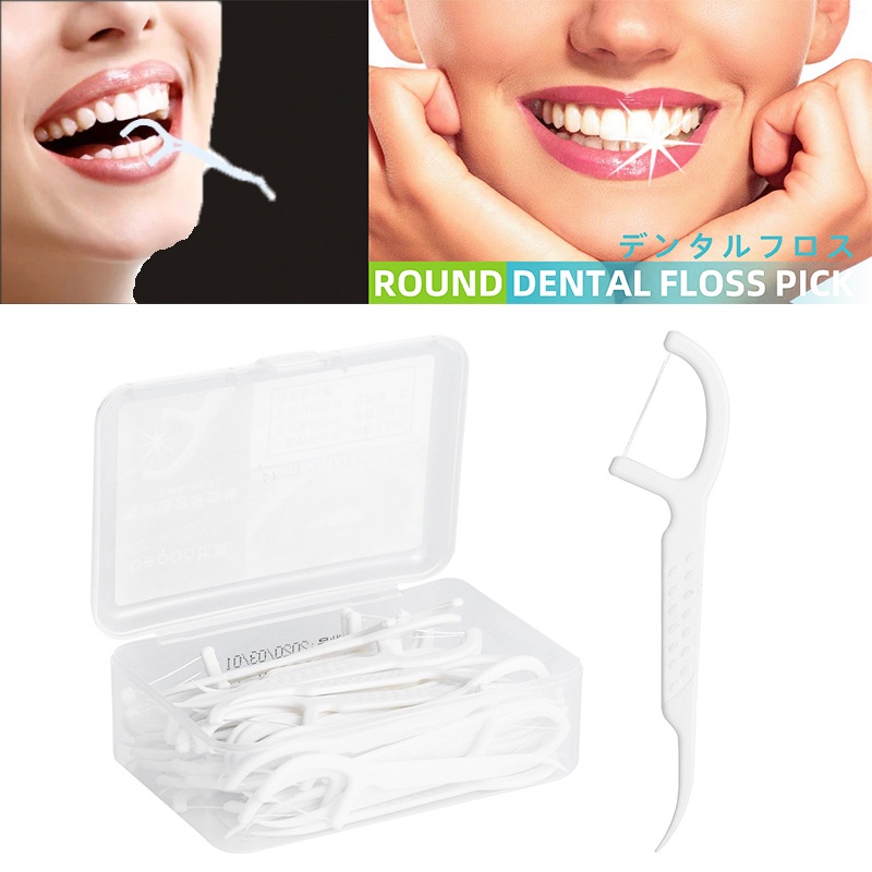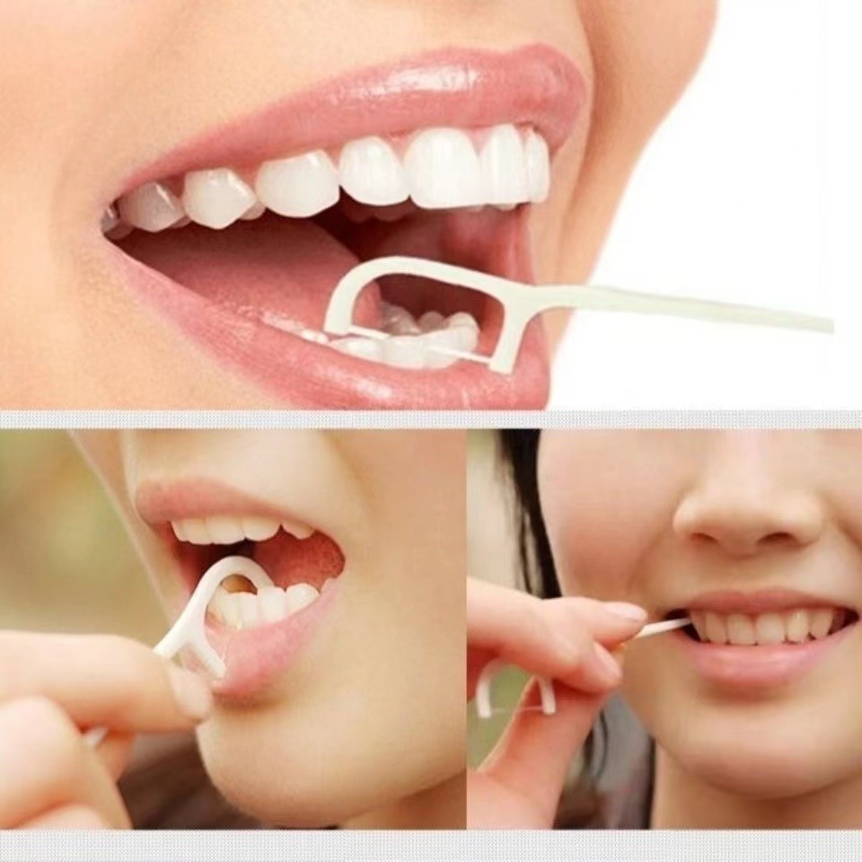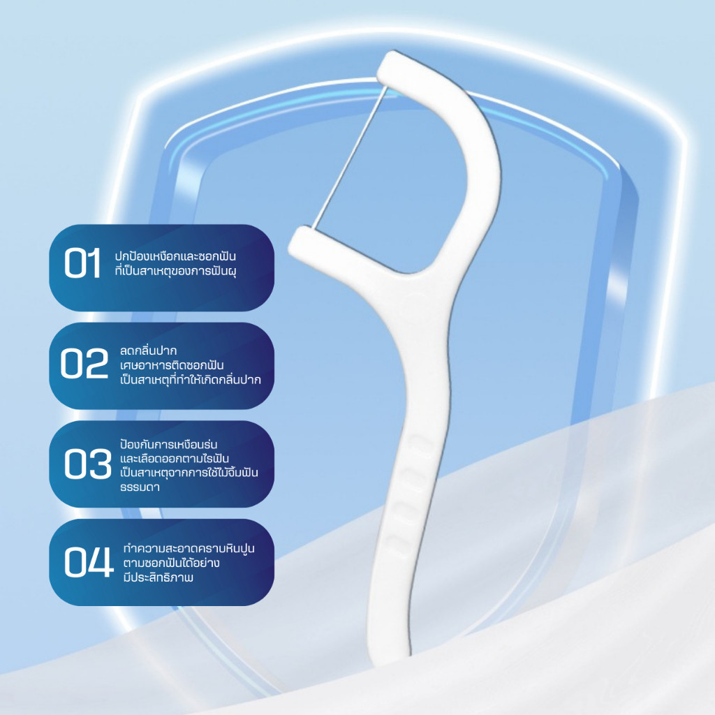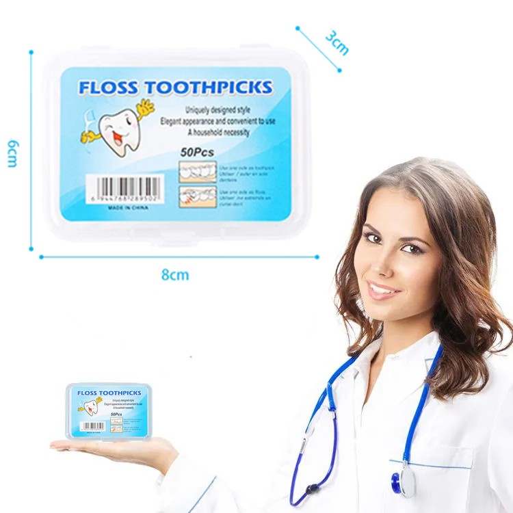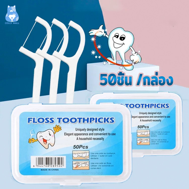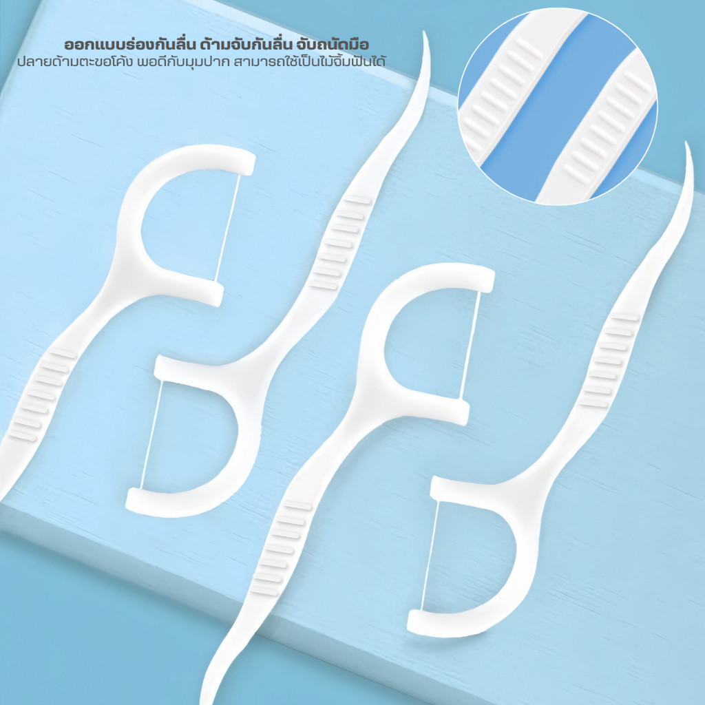 ไหมขัดฟัน 50ชิ้น /กล่อง ไหมขัดฟันชนิดด้าม ไหมขัดฟันแบบแท่ง เขี่ยเศษอาหารตามซอกฟัน อุปกรณ์ทำความสะอาดช่องปาก พร้อมส่ง
