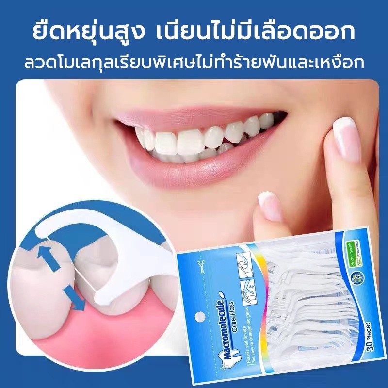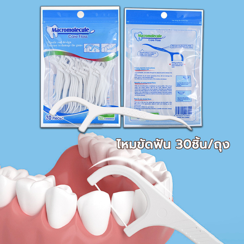 ไหมขัดฟัน 30ชิ้น/ถุง ไม้จิ้มฟันพลาสติก พกพาสะดวก ไหมขัดฟันแบบใช้แล้วทิ้ง สำหรับทุกวาย ทั้งเด็กและผู้ใหญ่