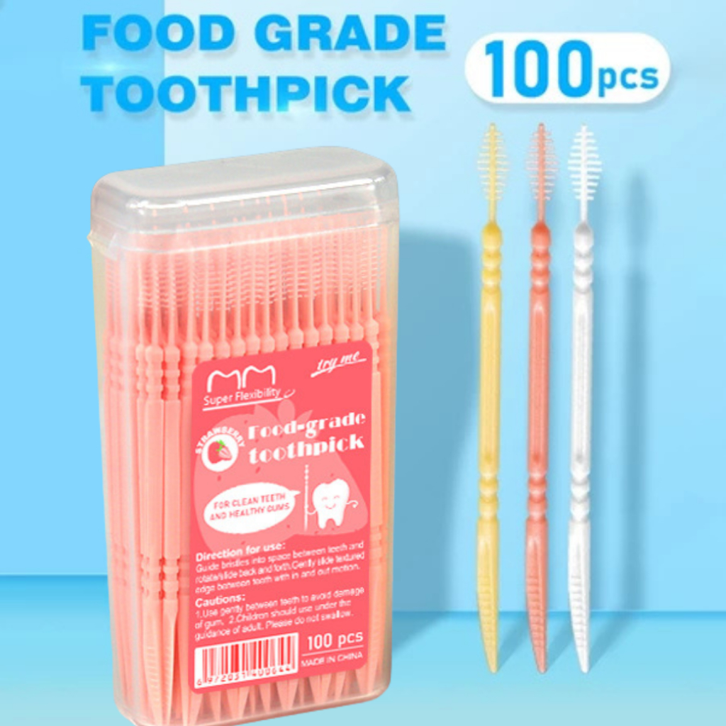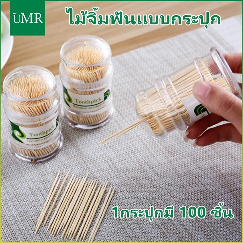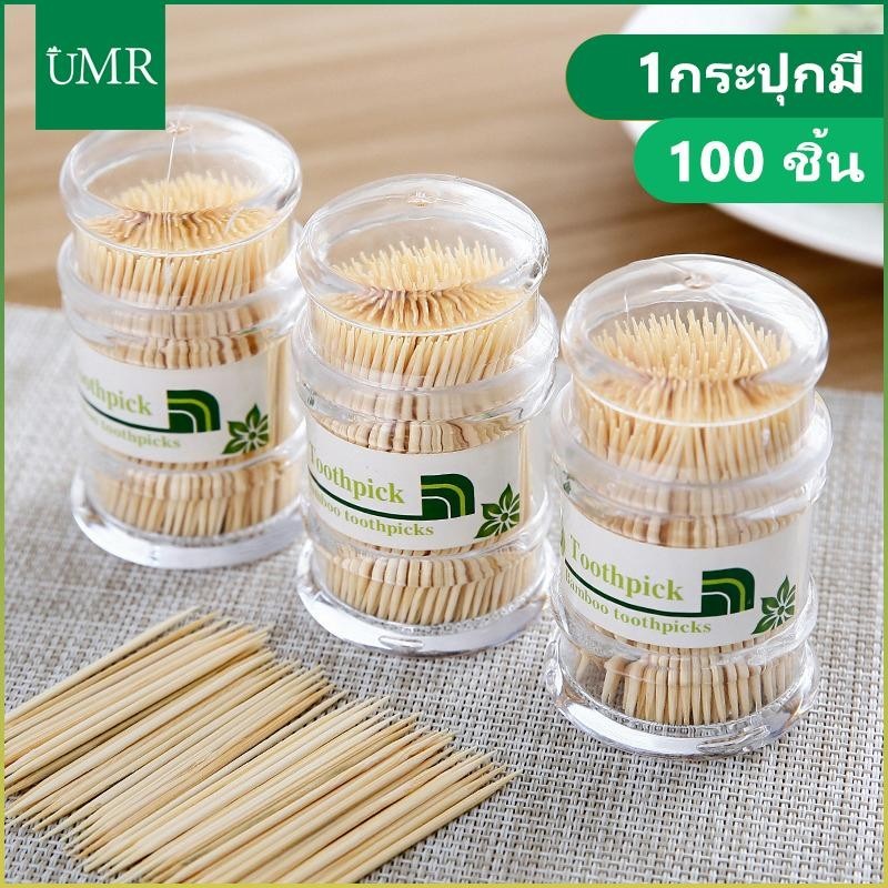ไม้จิ้มฟันเเบบกระปุก ไม้จิ้มฟัน ปลายแหลม ไม้จิ้มฟัน ปลายเเหลม ใช้ได้ทั้ง2ด้าน ผลิตจากไม้ไผ่อย่างดีสะอาด 1กระปุกมี100ชิ้น