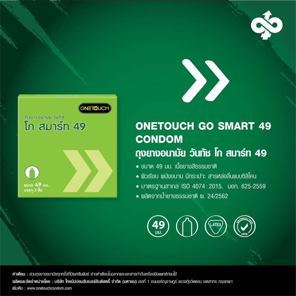Onetouch ถุงยางอนามัย วันทัช โก สมาร์ท รุ่น 49 มม. 6 กล่อง 18 ชิ้น