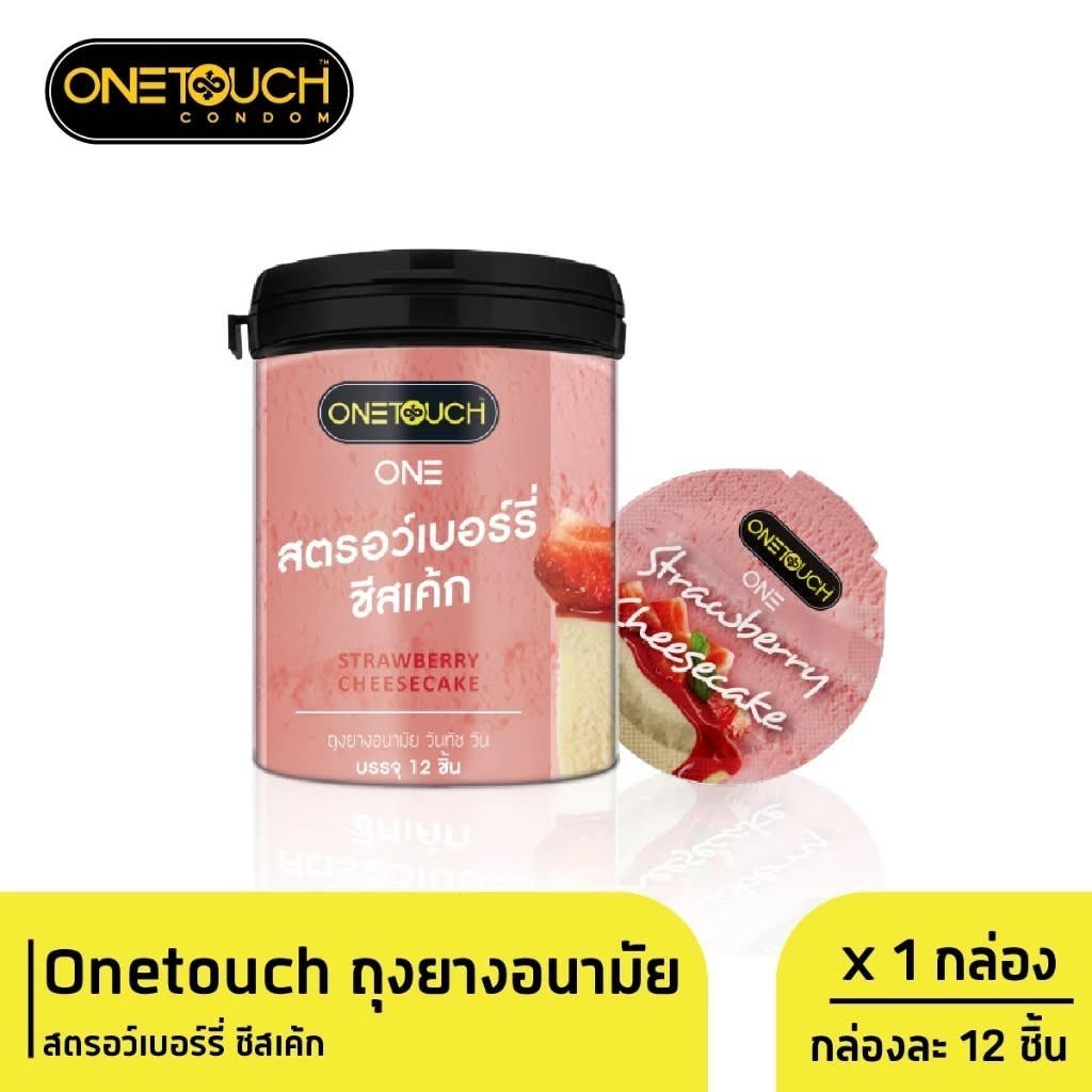 Onetouch วันทัช ถุงยางอนามัย 52 53 มม สตรอว์เบอร์รี่ชีสเค้ก วานิลลาฮันนี่โทสต์ ช็อกโกแลตฟองดูว์ แบบกระปุก 12 ชิ้น