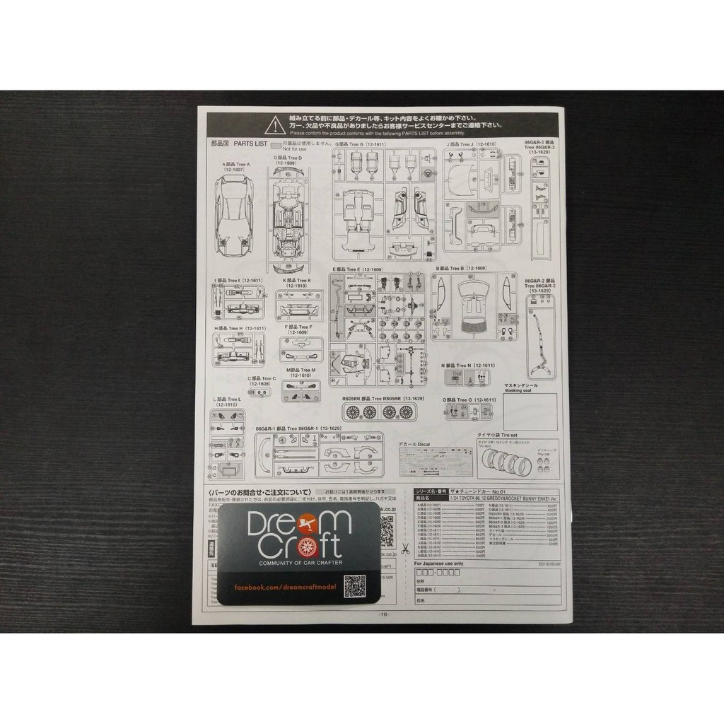 AOSHIMA 1/24 ZN6 TOYOTA 86 GREDDY&ROCKET BUNNY ENKEI TOYOTA (โทเดลรถยนต์ Model DeamCraft)