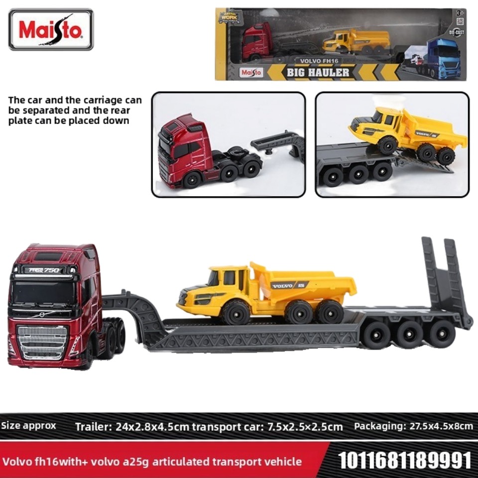 Maisto 1:64 Volvo FH16 & Scania 770S Heavy-Duty Flatbed Transporter Set with Die-Cast Excavator Truck – คอลเลกชันโมเดลโลหะผสม