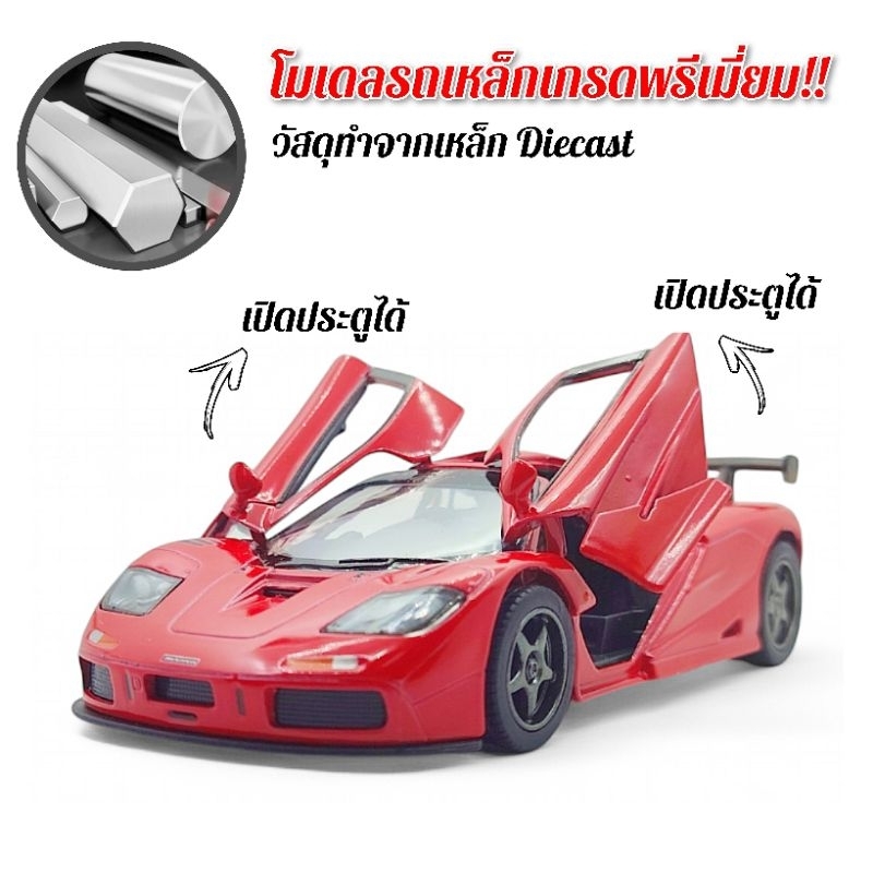 KINSMART โมเดลรถเหล็ก 1995 McLaren F1 GTR ยาว 12.5cm Scale1/34 ลิขสิทธิ์แท้ ประตูเปิดได้ มีลาน