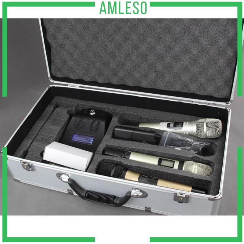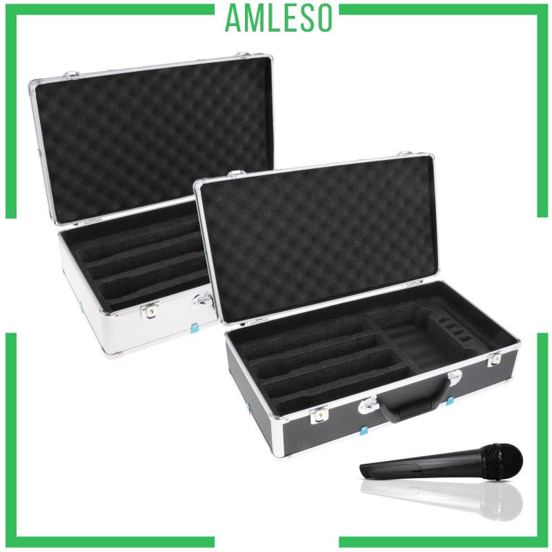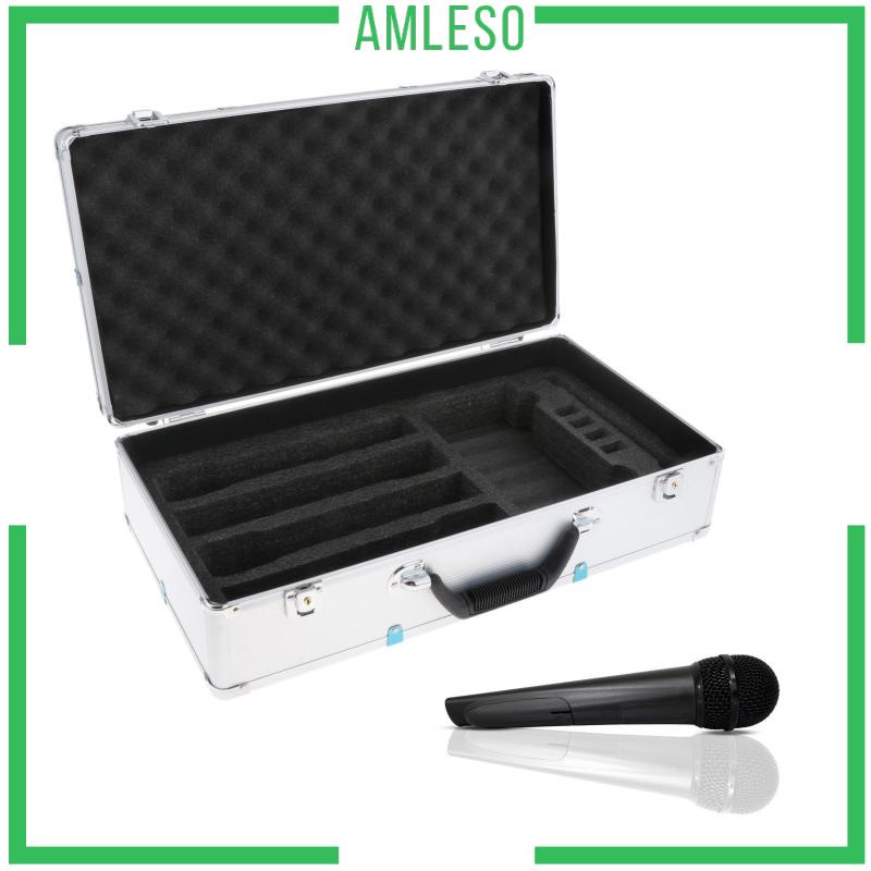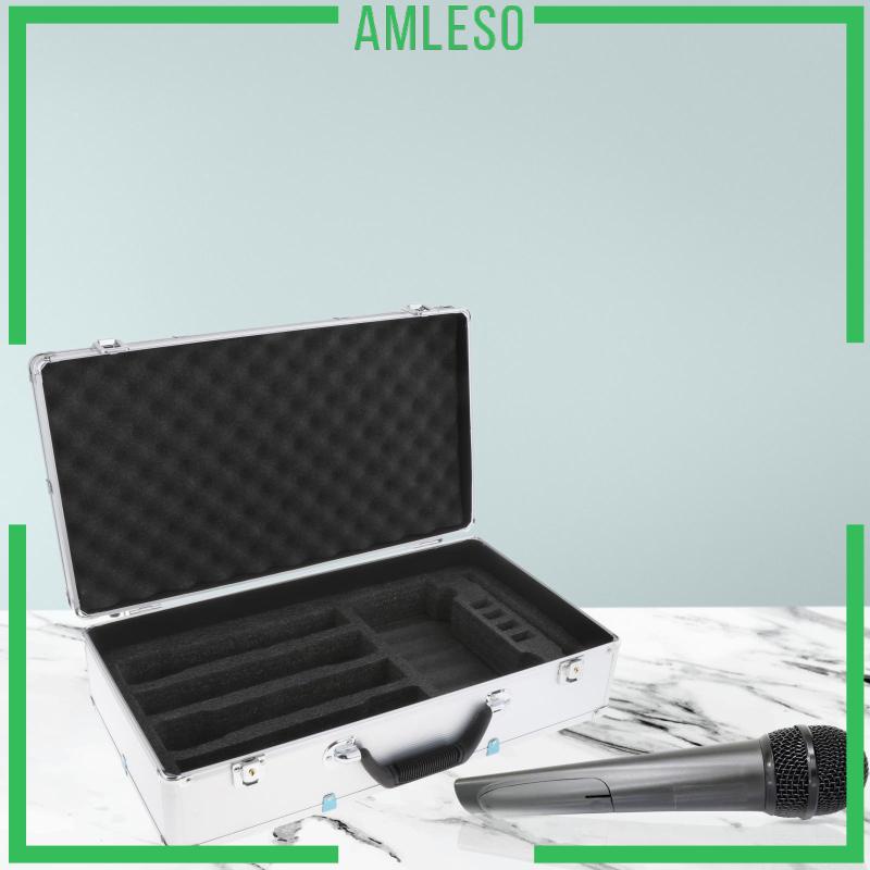 [Amleso] กล่องเก็บไมโครโฟน EVA โฟมอลูมิเนียม แบบพกพา สําหรับเวที ออกอากาศ สตูดิโอ