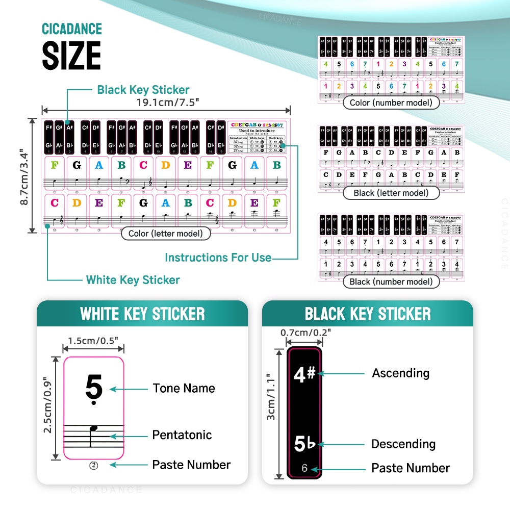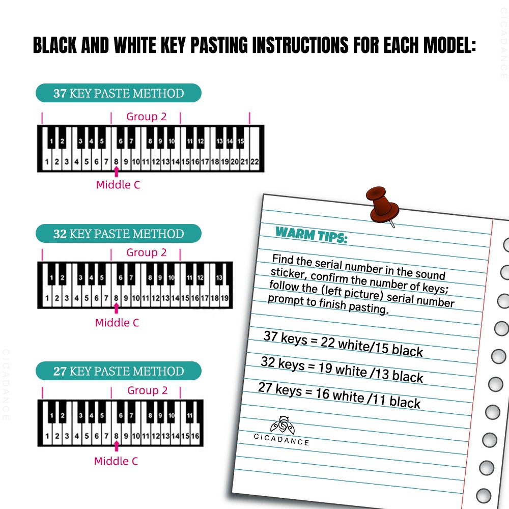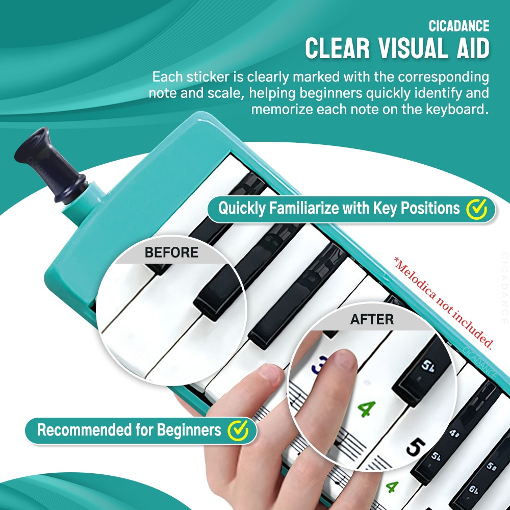 สติ๊กเกอร์ติดโน๊ต เมโลเดียน 37/32/27 คีย์ ถอดออกได้ โปร่งใส สื่อช่วยสอนแบบใสสำหรับผู้เริ่มต้น