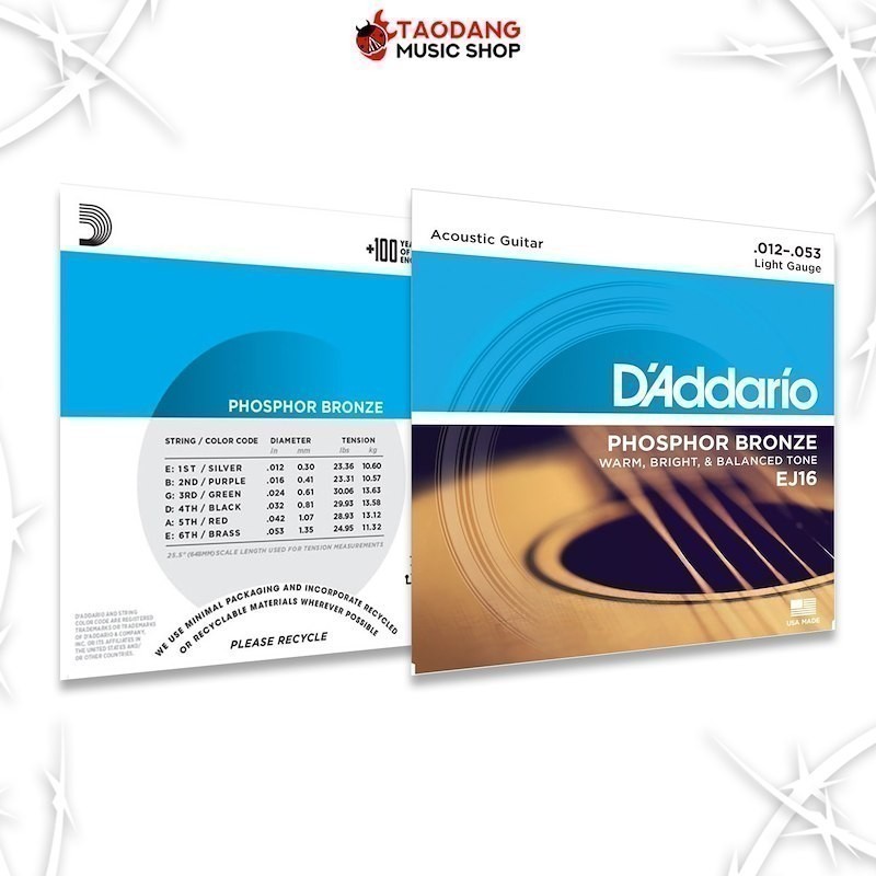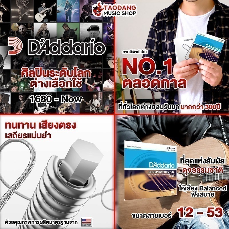 ส่งด่วนกทม.&ปริ, D’Addario EJ16 ขนาด 12-53 สายกีต้าร์โปร่ง D’Addario EJ16 Phosphor Bronze Acoustic String